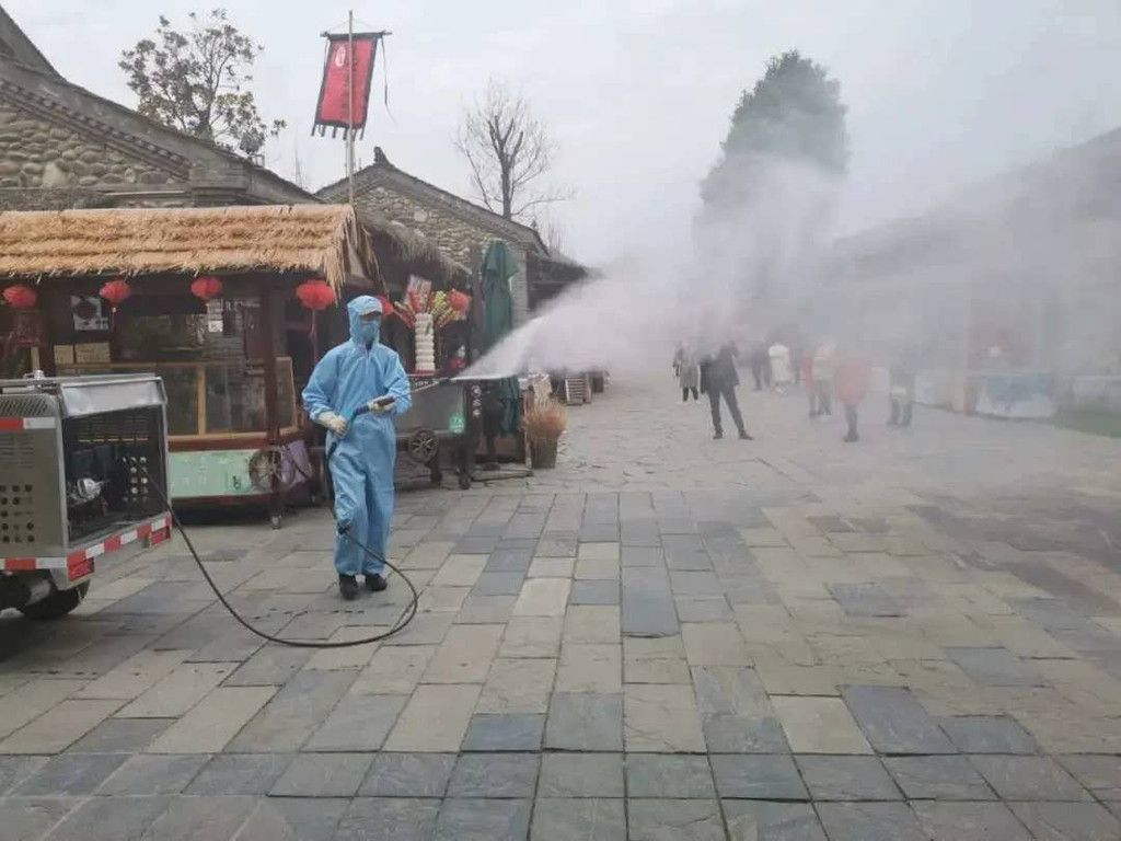 进入园区前有专门的工作人员给我们测量了体温,并做好了相关登记,刚好碰上园区定期消杀,看来安全措施还是不错的。