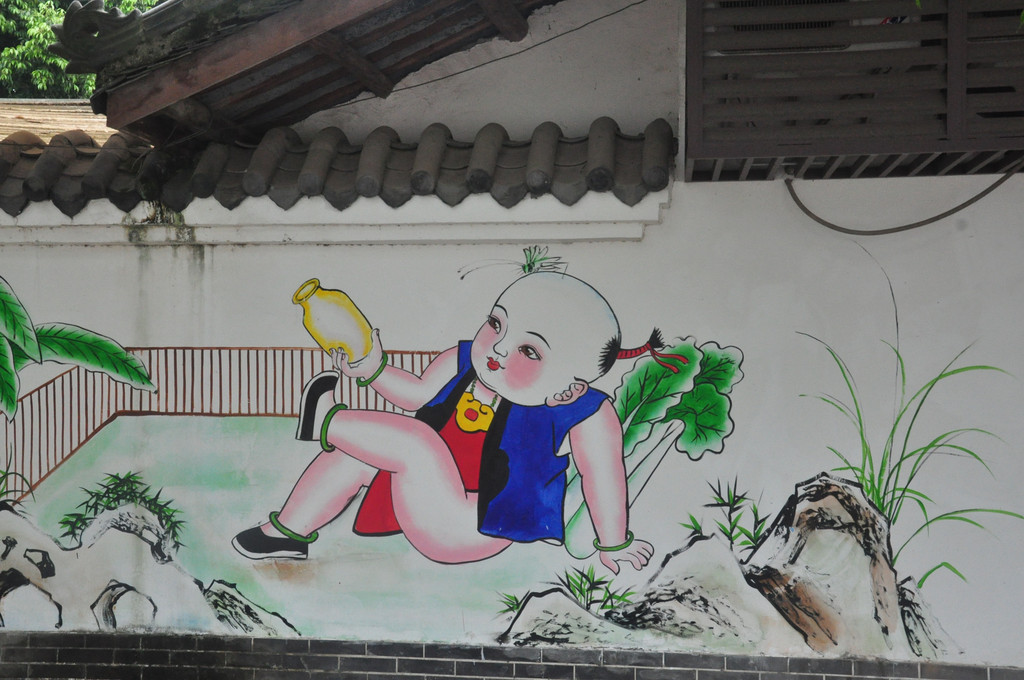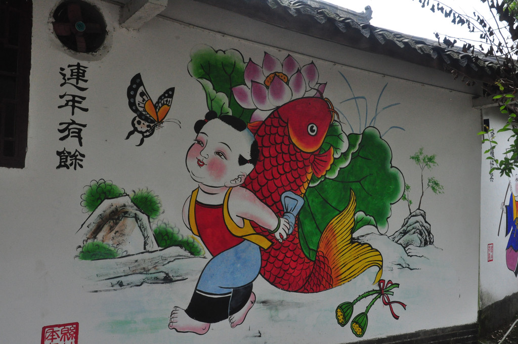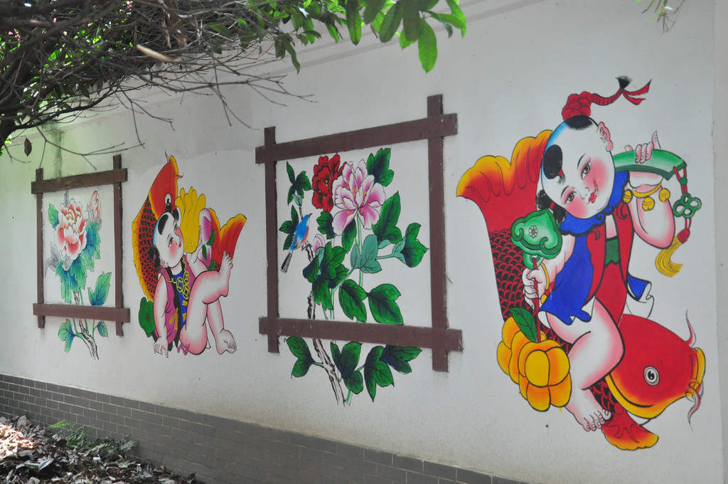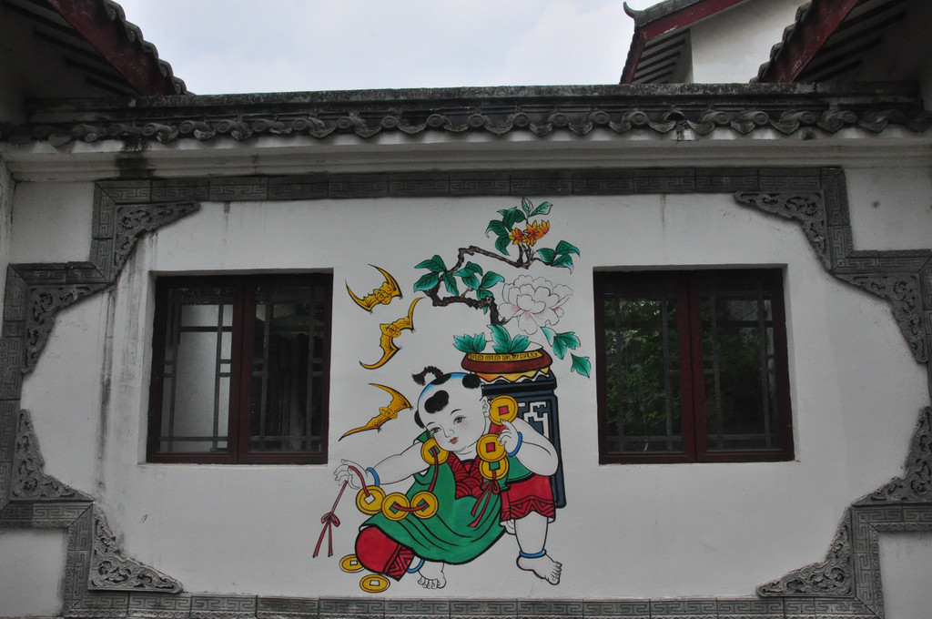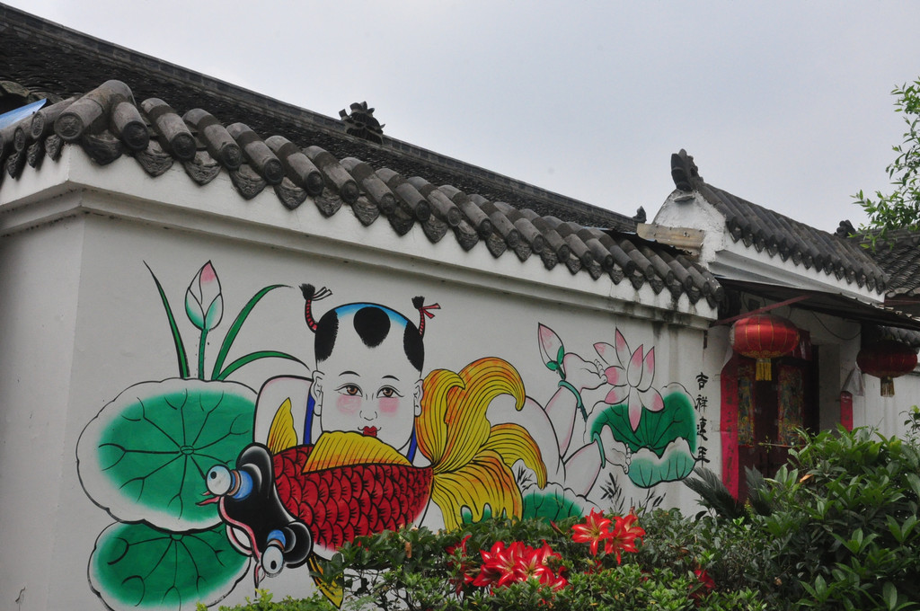 年画村分为两个片区,东区和西区,我们最先到达的是年画村的主景区东区,这里有游客中心,村委会,明清园和诸多的上墙年画。看过约需一个小时。