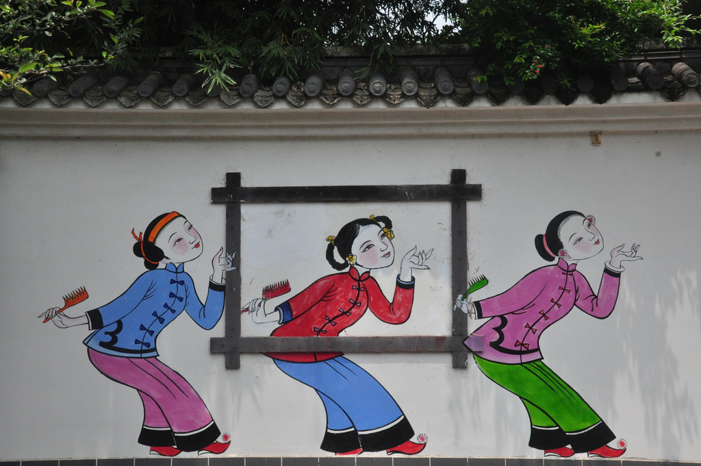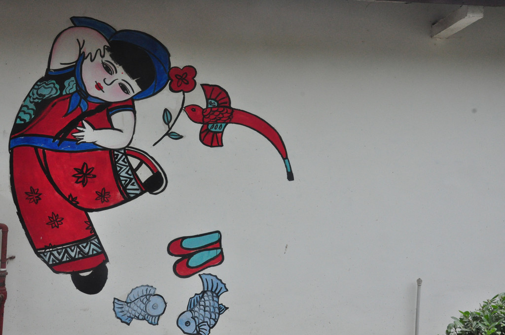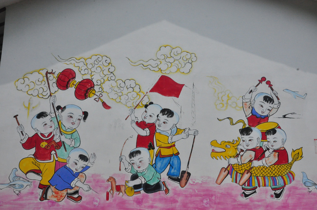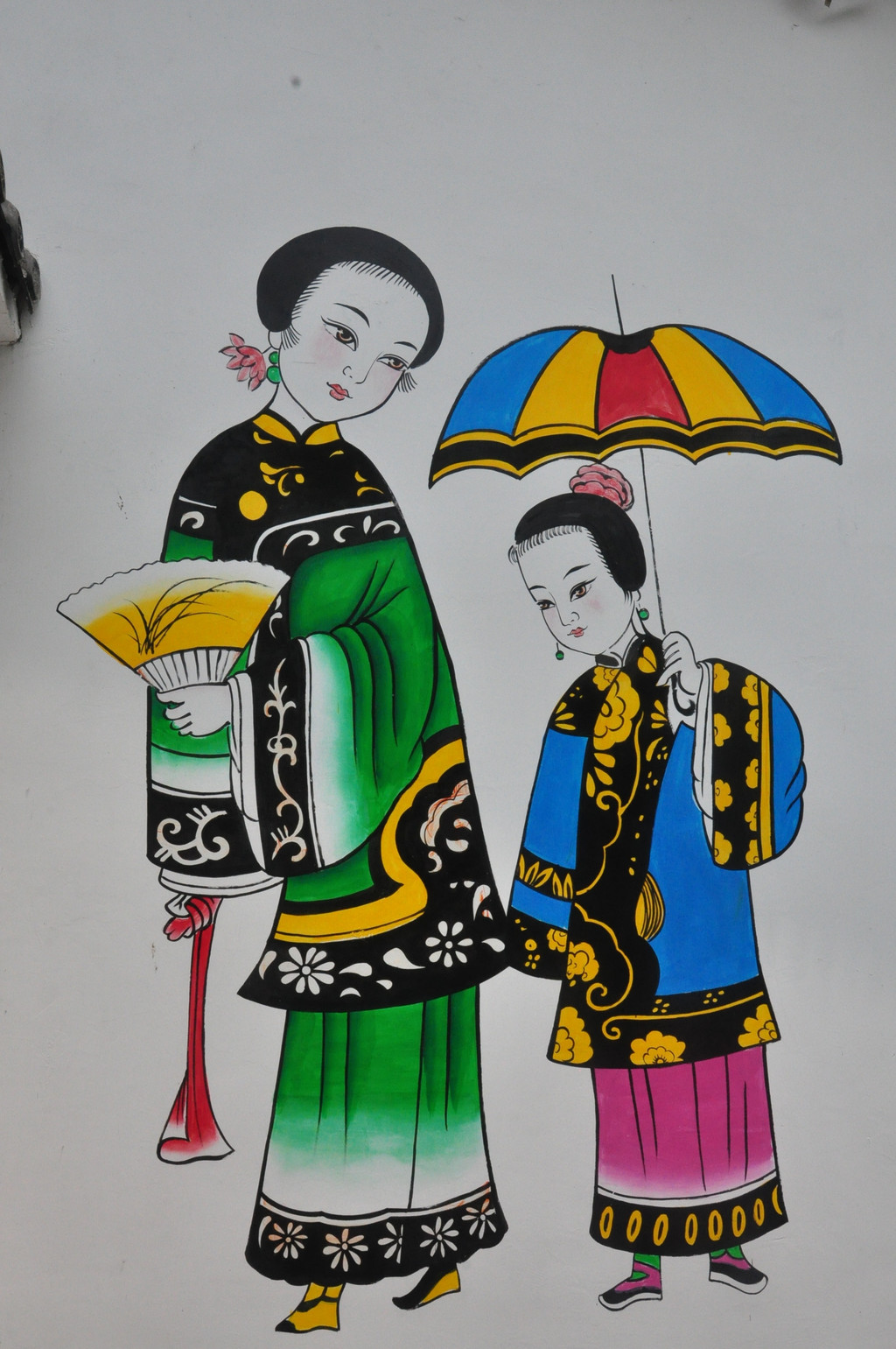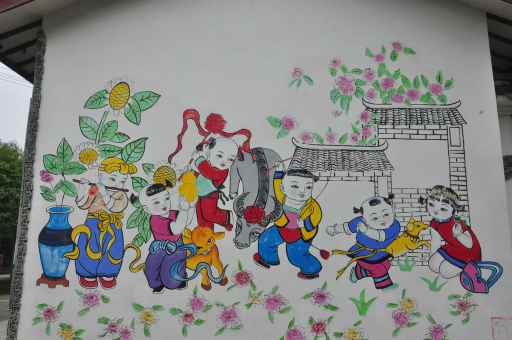 年画村分为两个片区,东区和西区,我们最先到达的是年画村的主景区东区,这里有游客中心,村委会,明清园和诸多的上墙年画。看过约需一个小时。