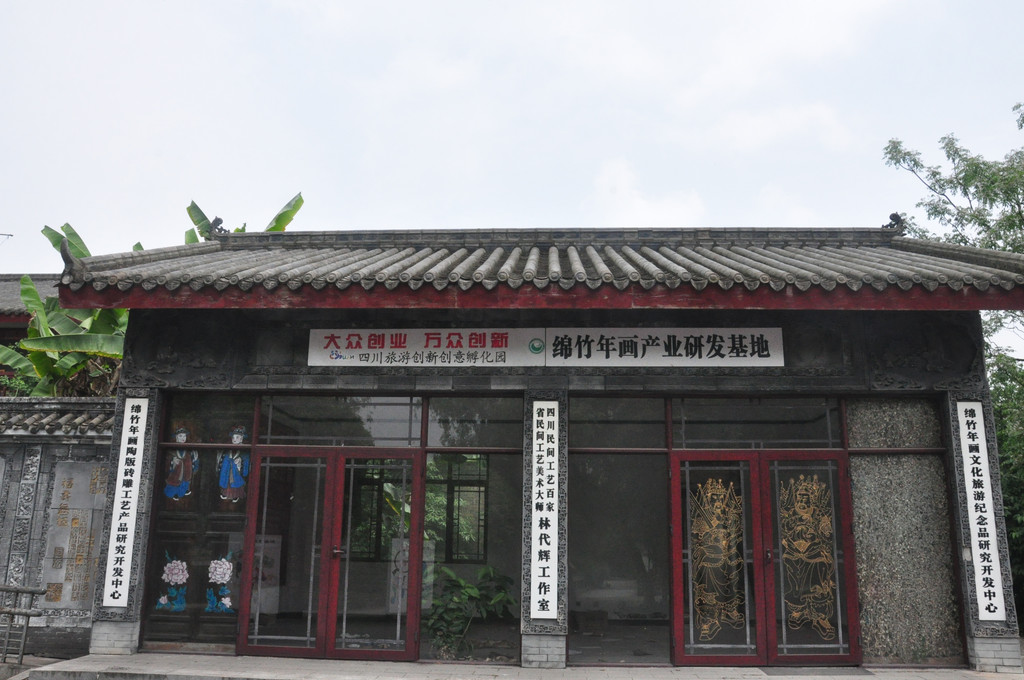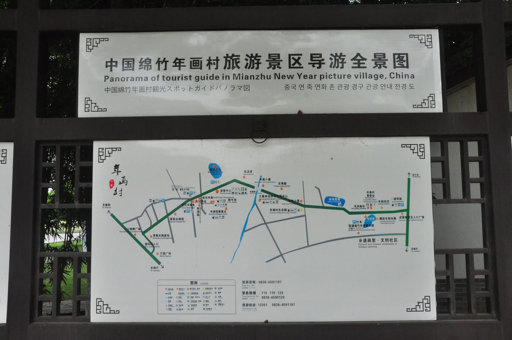 另外一个片区有年画展示馆,年画湖,但是两地距离有两公里左右,本来我们打算看完这边作罢,以为从这边公路去绵竹更为方便。通过询问游客中心工作人员,她告诉,看过这边,还是要到那边看看,不仅还有看点,而且去绵竹可乘3路公交车直接到绵竹市区,交通更为方便。