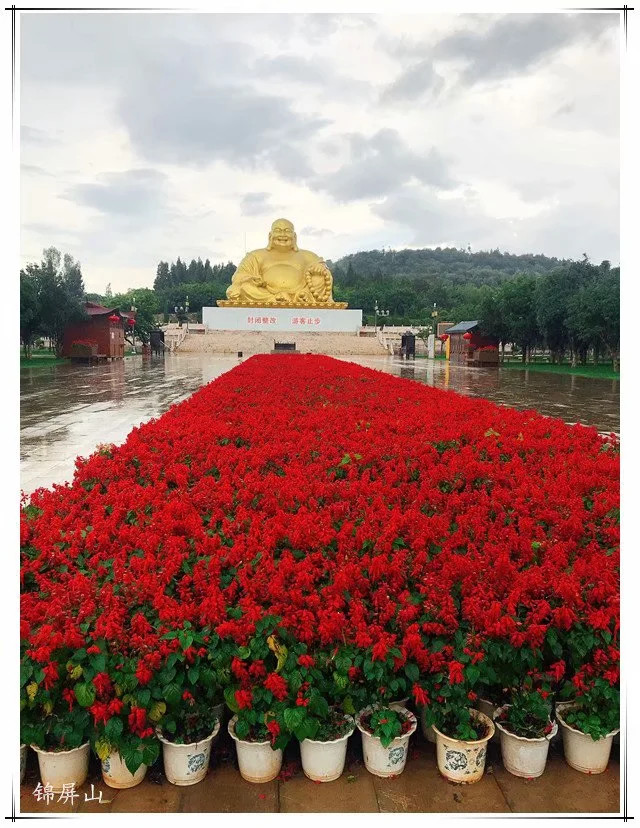 从可邑小镇下来往锦屏山风景区。弥勒市以佛命名,而世界上最大的弥勒大佛就在锦屏山。山似弥勒,寺为弥勒,佛是弥勒,则市为弥勒,也是一大特色。从山脚一路往上有1999级台阶,我们到得晚,车子可以直接开到山顶,观了佛勒大佛,从至高处可以望见弥勒市,云收雨歇,天露微蓝,空气清新,这里,是一个安逸的城市。