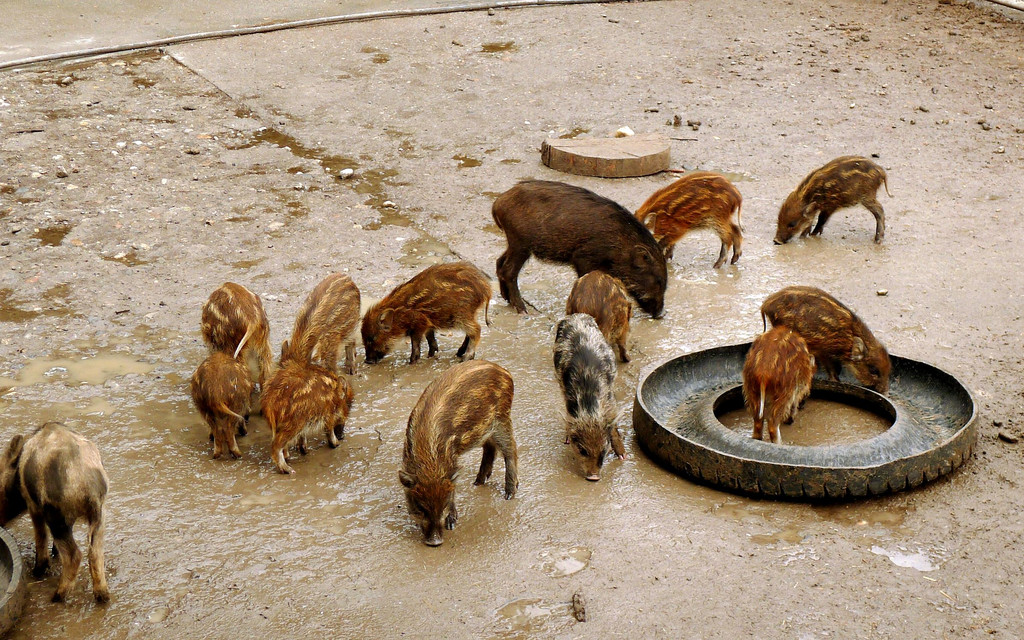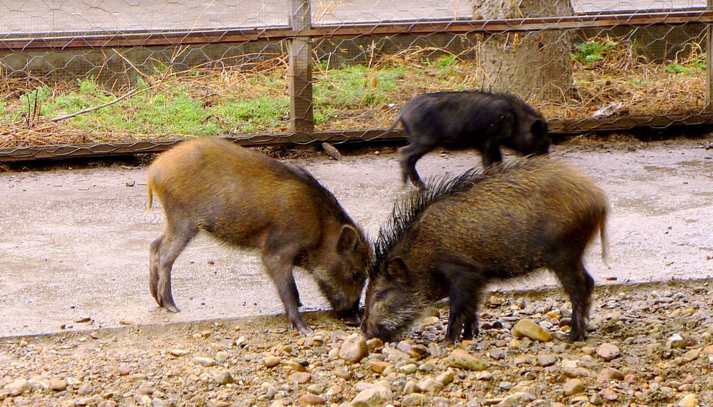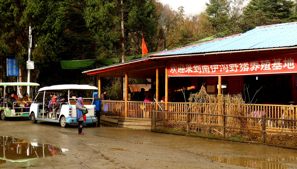 第二站是参观“南伊沟野猪养殖基地”,这里的野猪幼仔都是圈养,稍许长大就“放猪归山”,任由它们在周边山林里乱跑。不过,野猪毕竟还是有点儿野性,不像是一般的“藏猪”那样对人友善,我只是稍微靠近,它们就立即逃之夭夭。