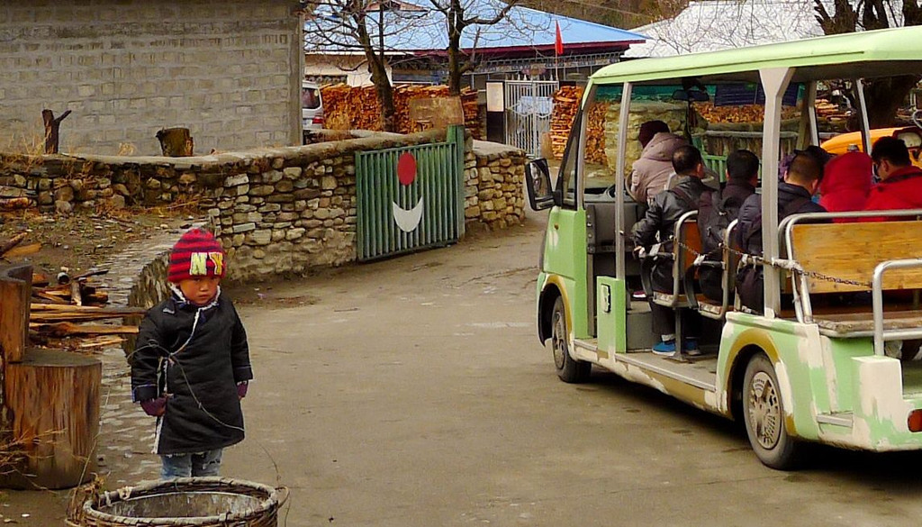 交通车10:00出发,首停“琼林珞巴民族村”,村中设置“民俗文化广场”展示珞巴族的民居、民风、民俗、服饰。珞巴族有自己的语言,但无文字,主要是生活在林区,传统上是依靠畜牧、纺织、采集、竹器制造以及狩猎谋生。近来也已开始发展旅游,只是还不太懂得要大力凸显民族特色吸引游客,村民大多都不穿着民族服装,看上去就跟内地的汉族没啥两样。然而,村中的狗却是很快就适应了旅游新环境,每当游客登车准备撤离,狗儿就会聚集车边送行,因为游人此刻经常会给它们喂食。