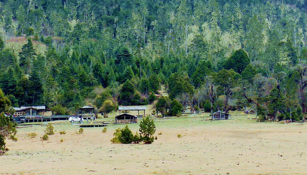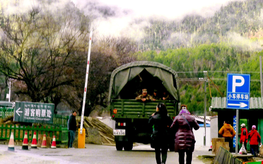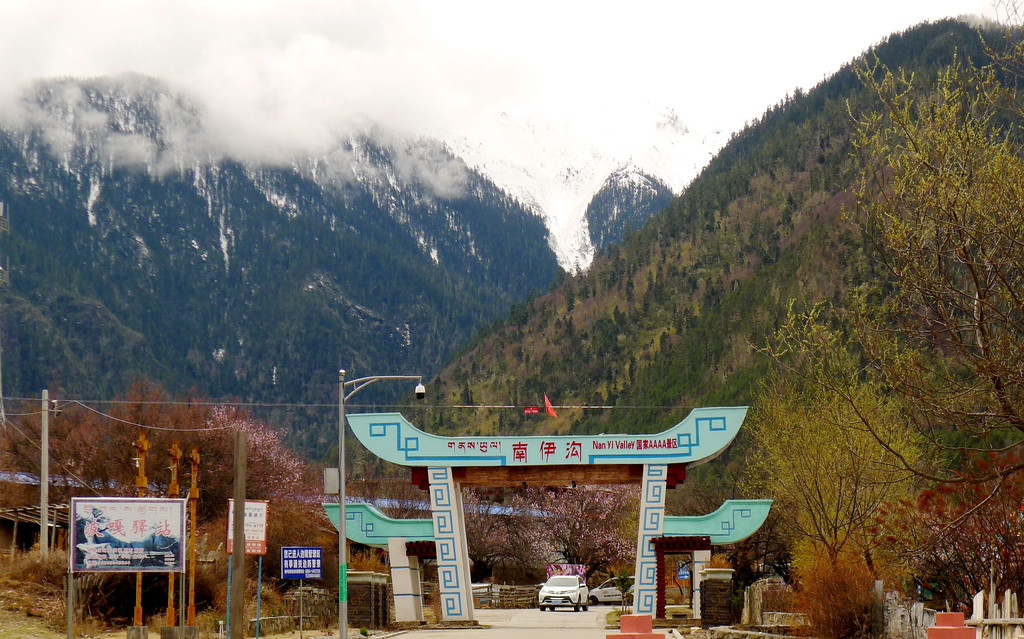 “米林”也属福建省援建,小城颇为整洁,我们9:30出发前往南伊沟,9:45抵达。南伊沟位于米林县城南侧5~6公里处,海拔3000米左右,位置上是属于喜马拉雅山脉的东段,沟内有一条“南伊”小河,自南而北注入雅鲁藏布江。南伊沟也是我国人口最少民族“珞巴族”的最大聚居地,山沟纵深40公里,沟外雪山环抱,沟内森林茂密。此外,南伊沟还紧邻中印两国实际控制边境线,沟内有武警部队驻守,我们抵达时须先将身份证交给武警哨所换取“入门证”,然后方可进入景区。