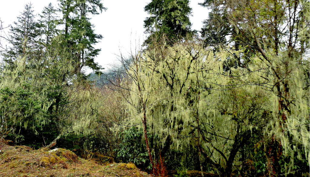 沿着南伊河溯流而上,我们逐渐进入密林深处,路边的树上都悬挂着长长的“胡须”,它们是一种寄生苔藓类植物,叫做“松萝”,据说对于环境要求极高,空气中稍有污染就不能存活,所以,它们的存在就意味着此处有着近乎原始的生态环境。然而,“松萝”也是植物的杀手,被它们寄生的树木会被慢慢吸光营养,最终枯死。