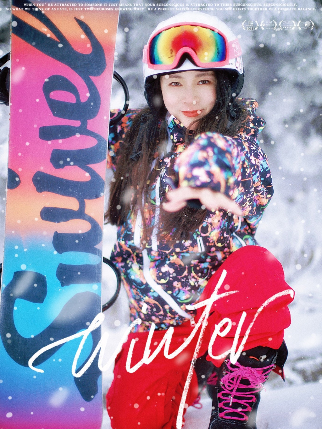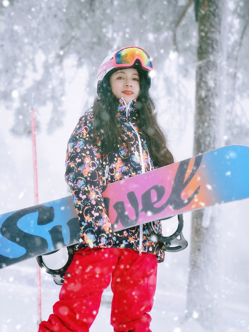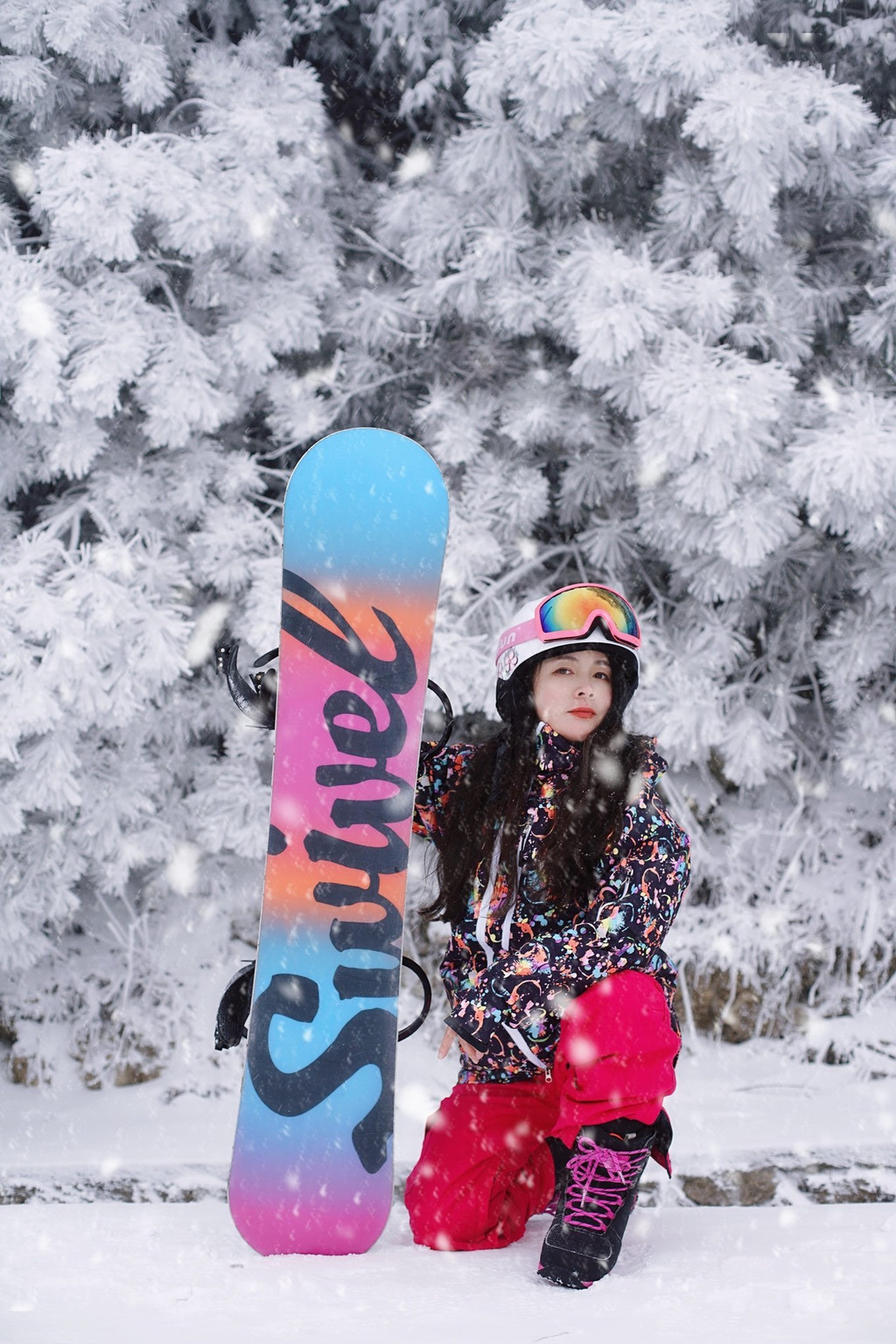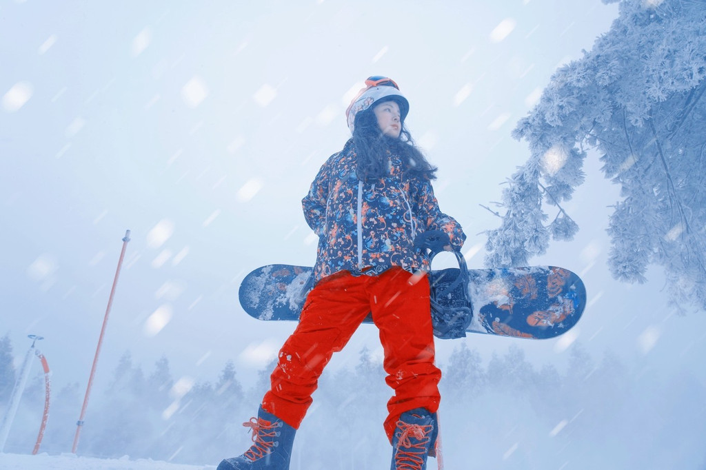 不过单板打卡照简直酷毙!尤其配上雪花雾凇,在明月山滑雪场秒变飒女郎!