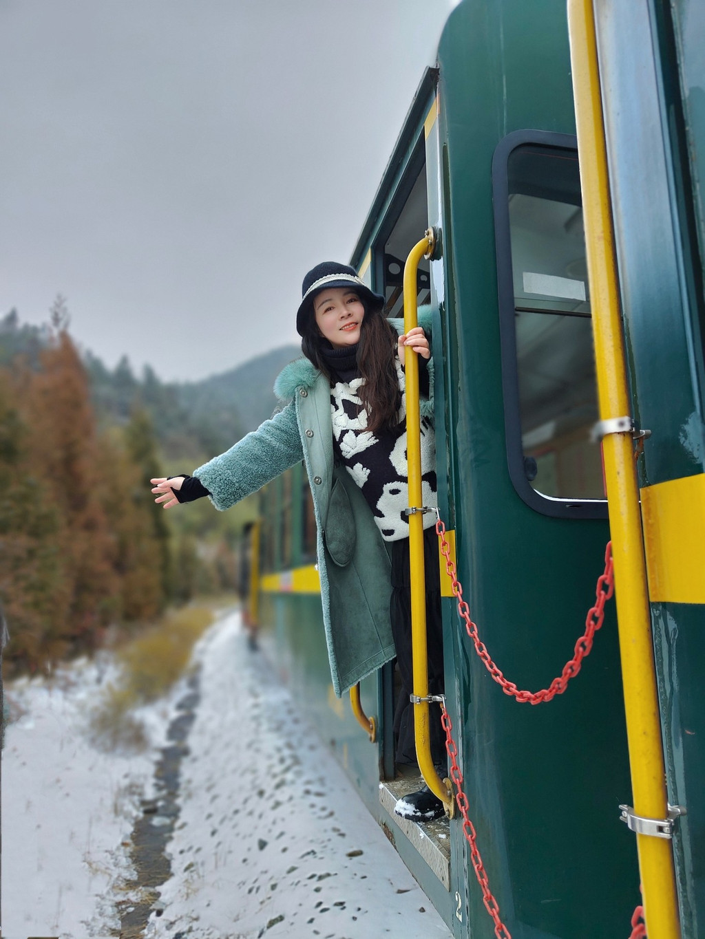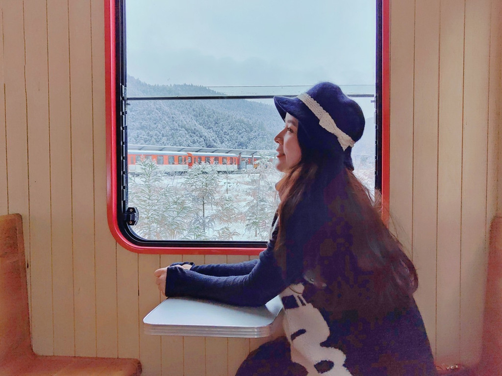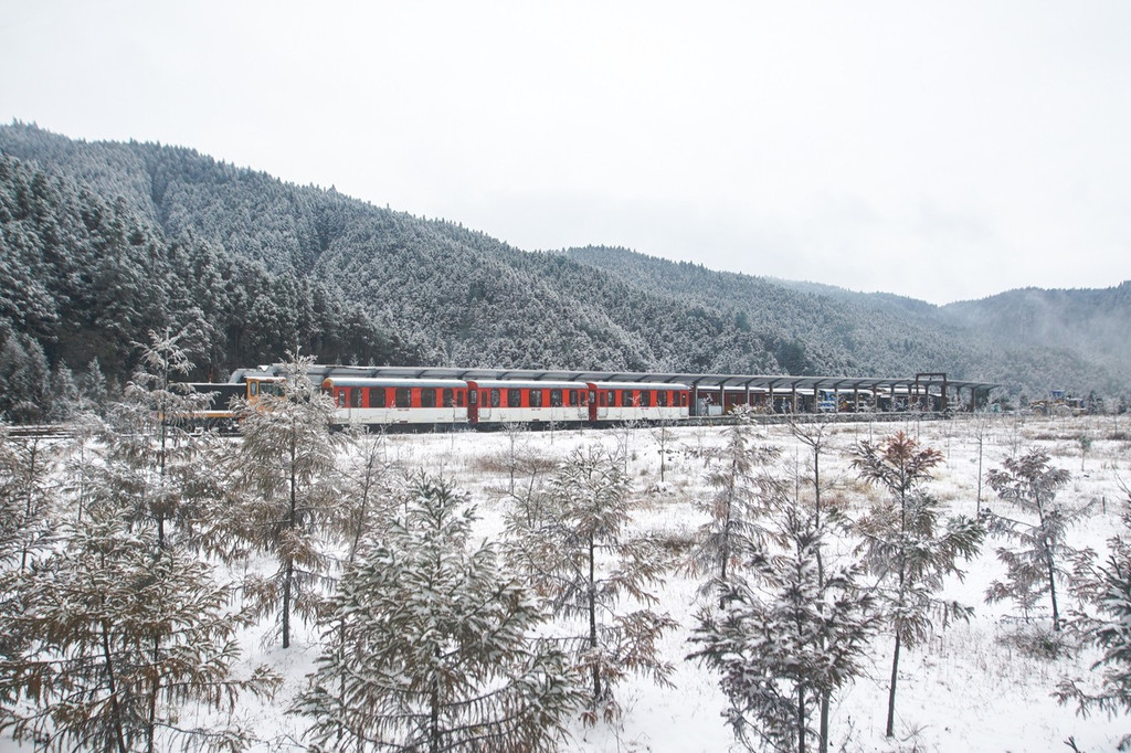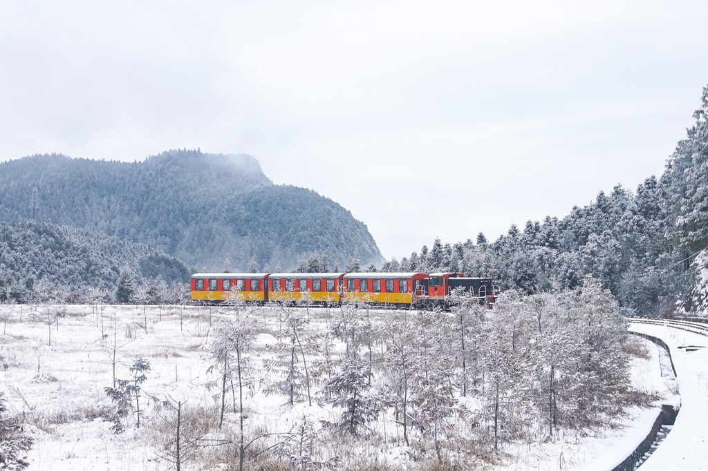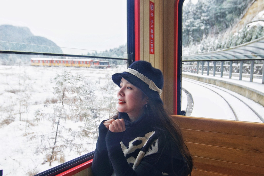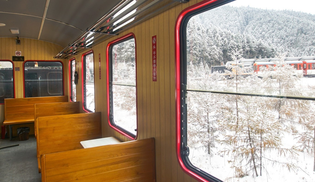 一列又一列火车静静矗立在雪中,让我有种身在莫斯科的感觉。随着一声鸣笛,古老的车厢缓缓开动,透明的车窗外略过一片片山林风光,带我驶向未知的风景。