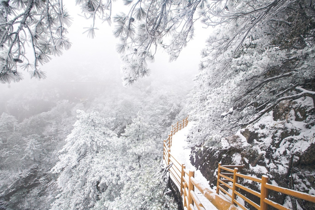 要是有时间和体力一定要去走走全程,3公里环形路程,南国冰雪风光尽在眼前脚下。沿途悬崖峭壁雪松林海,偶有奇松凸立其间分外嶙峋,时而云缠雾裹乍隐乍现,影影绰绰,令人陶醉……