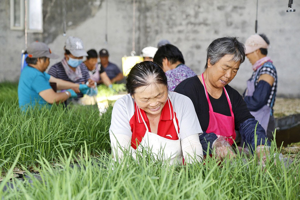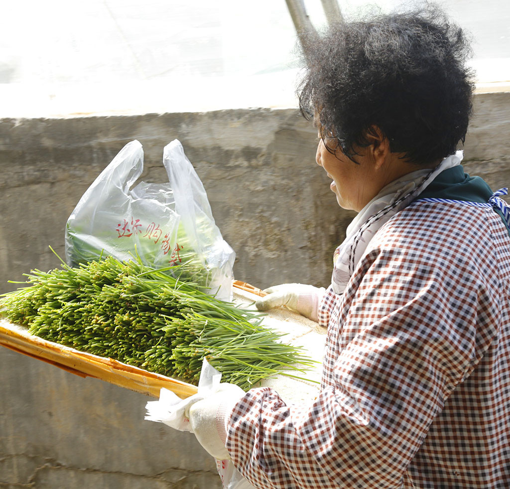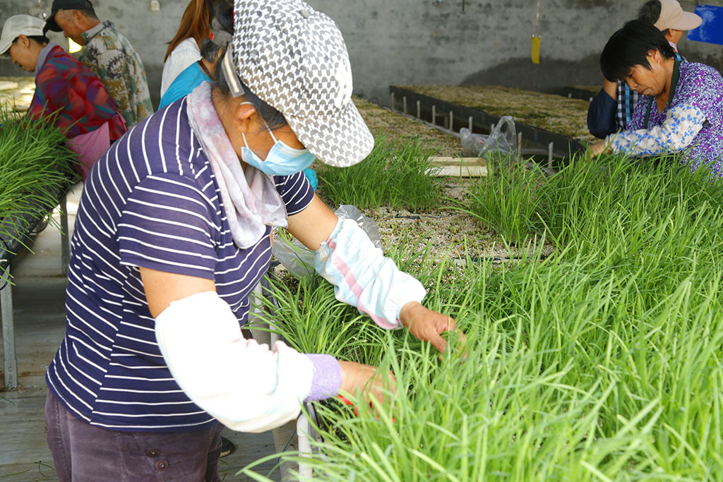 我们参观了他们的现代农业科技发展园区,利用人工服务体现无土栽培的各种蔬菜,刚好有水培韭菜正在收剪,我们可是有口福了,每人采摘了一捆韭菜。