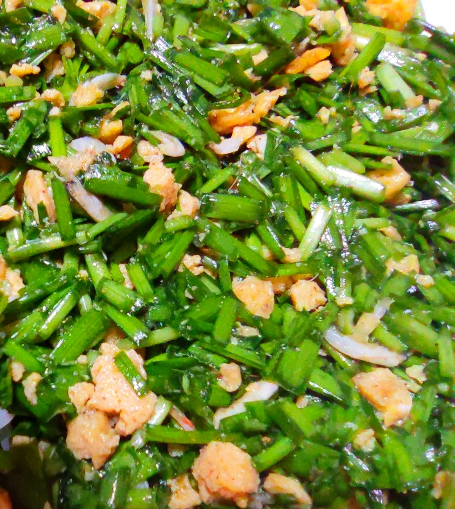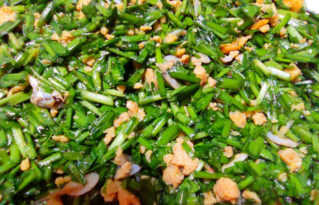 回家后禁不住立刻用韭菜做馅包包子,看看到底有什么不一样。这下可是让我大开眼界了,以往做韭菜馅,一定要先和好面,而后才做馅,做好馅赶快包,不然韭菜会出很多水,很不好包呢。