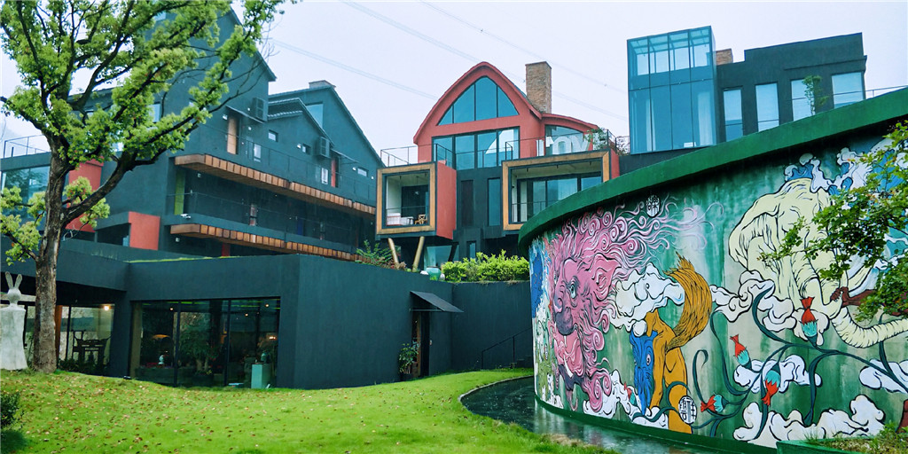 坐落在莫干山镇筏头村的芝麻谷艺术酒店,独占了一座小山头。