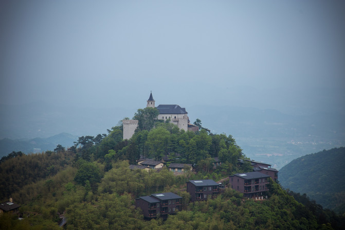 莫干山有座有名的城堡,是很多人都向往已久的裸心堡,从莫干山放眼望去,在另一座山头上,我们也自然而然的去了,谁知,山上起雾,刮风,下雨。