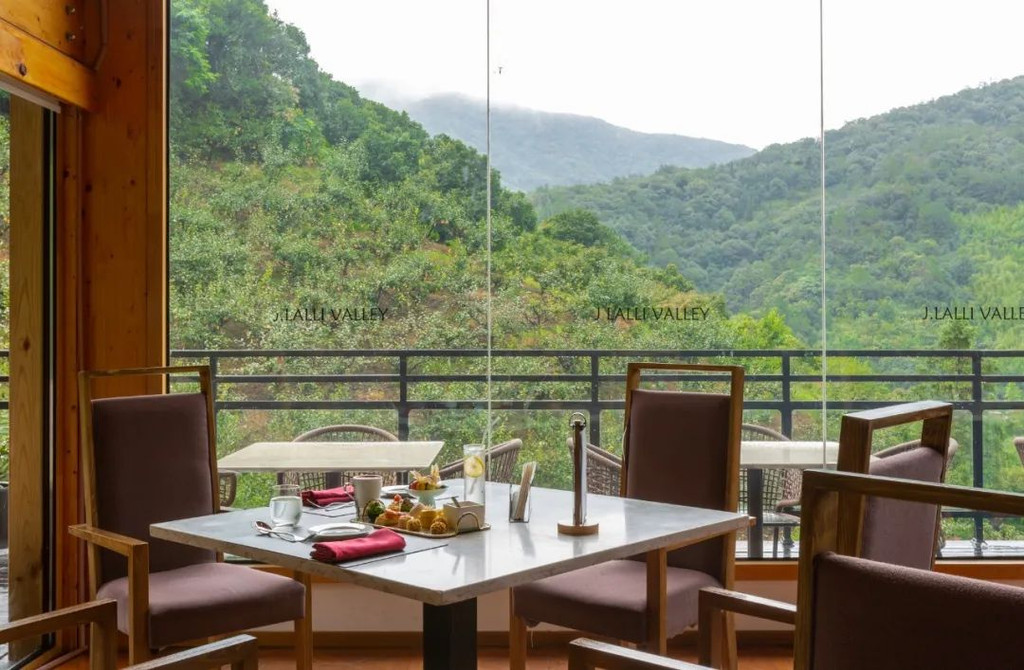 在客房的阳台上看远山迷雾,在云顶西餐厅享用精美甜点,在麦面馆听雨水沿着屋檐滴落的声音,想必这是来莫干山最惬意的度假方式。