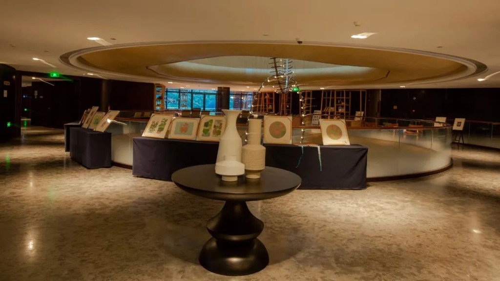 在国际会议中心三楼,不定期会开设有山间课堂,小朋友可以跟着老师学习植物拓印,草帽彩绘,扇艺体验,绘画课堂,陶艺DIY 等课程。