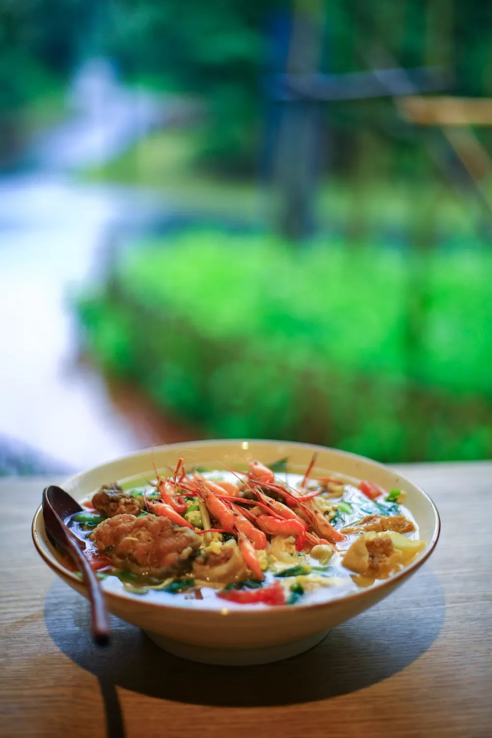如果你只想简单的吃一碗面条,那么山林里的麦面馆是值得推荐的好去处。家常配方,劲道面食与当地绿色时蔬以及河鲜完美搭配,呈现出一大碗热气腾腾的面条。