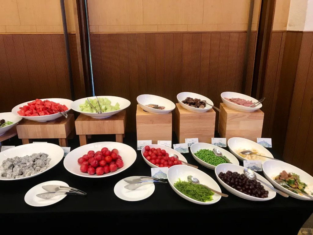 入住期间,早餐安排在国际会议中心的一楼玉茗厅里享用。宽敞的用餐环境,不必担心人多找不到位置,同时环形的餐台取餐也无需排队。早餐提供有丰盛的环球美食,满足宾客们饮食所需。