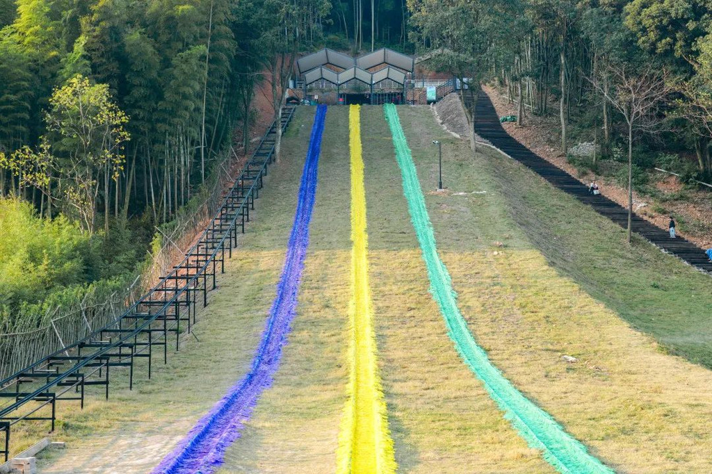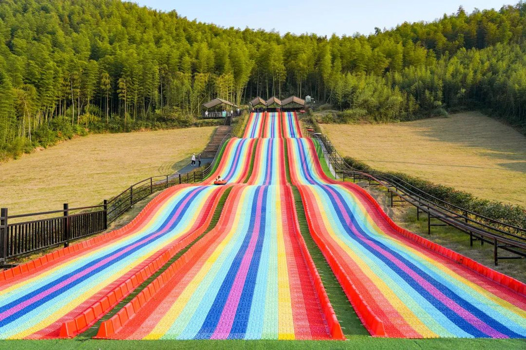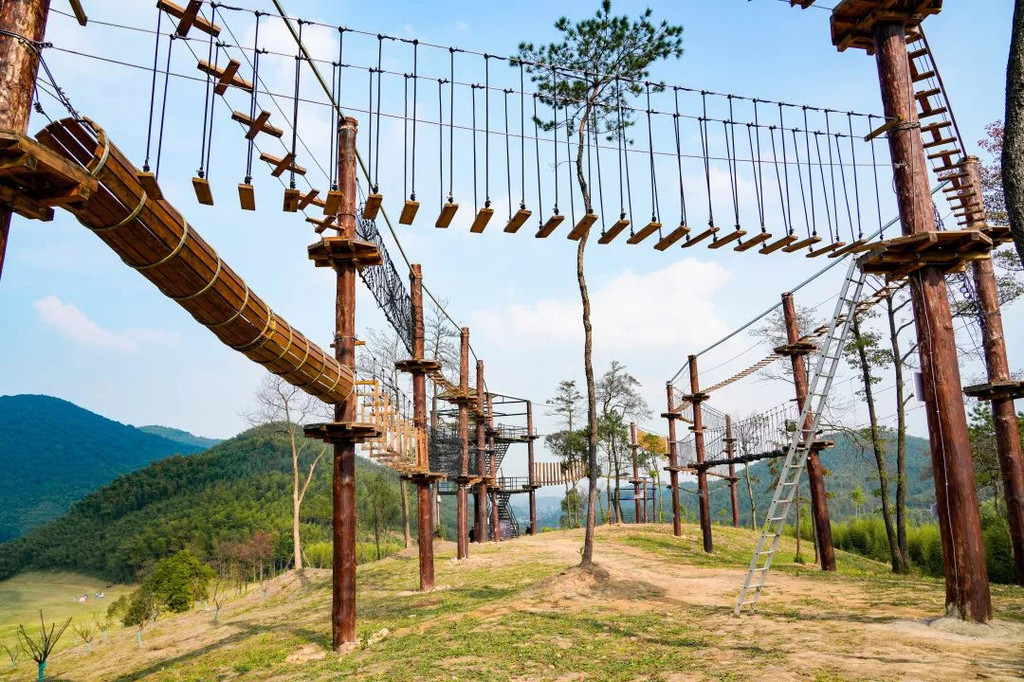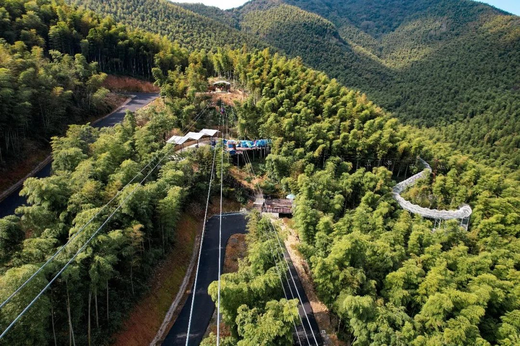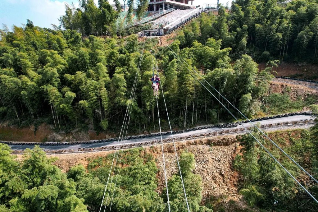 不仅有绿意连绵的竹海风光、铺青叠翠的如茵草地、漫山遍野的格桑花海,还有时空隧道、空中漫步、竹海高空溜索、天际滑板车、竹海漂流、七彩滑道等精彩纷呈的户外游乐项目。