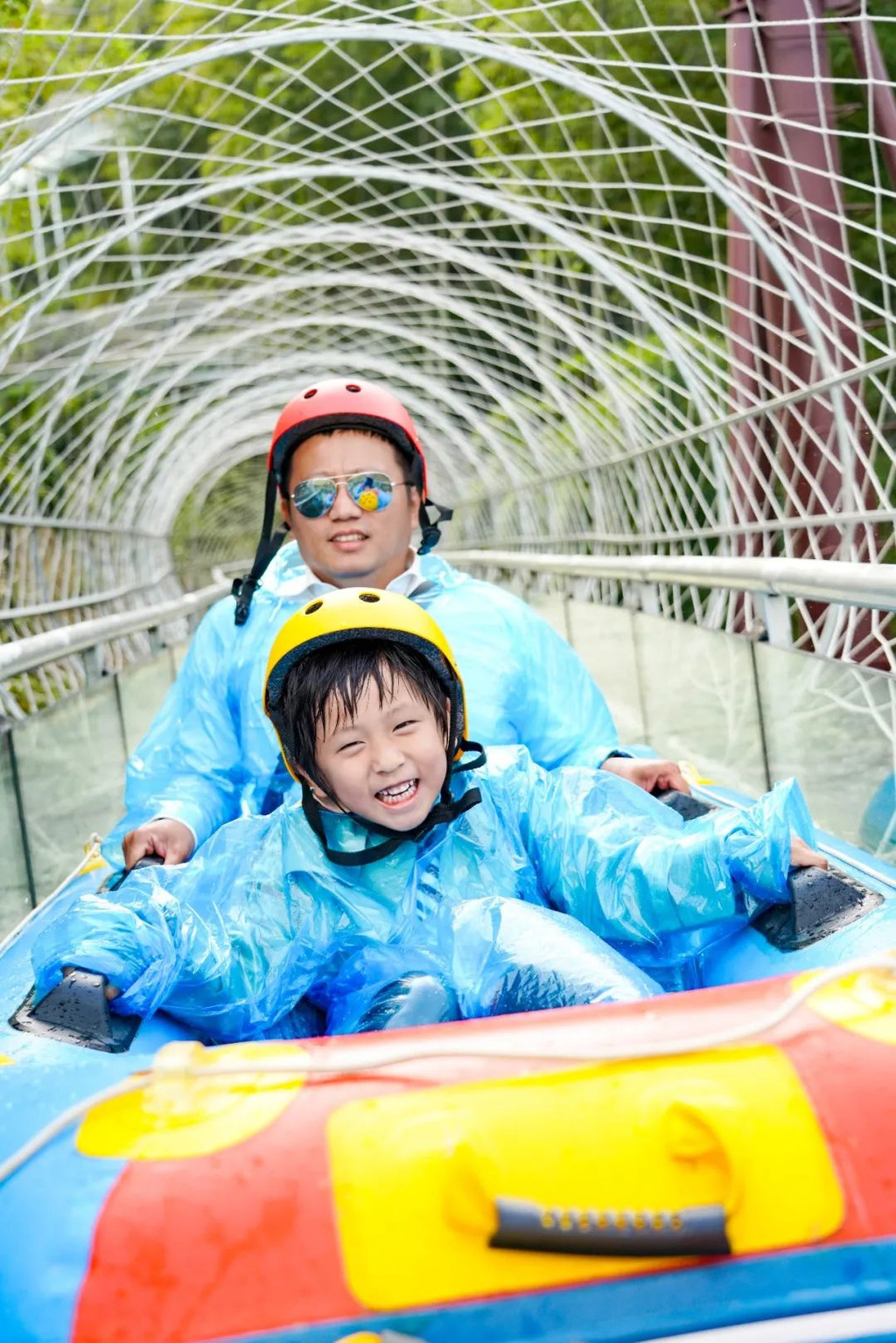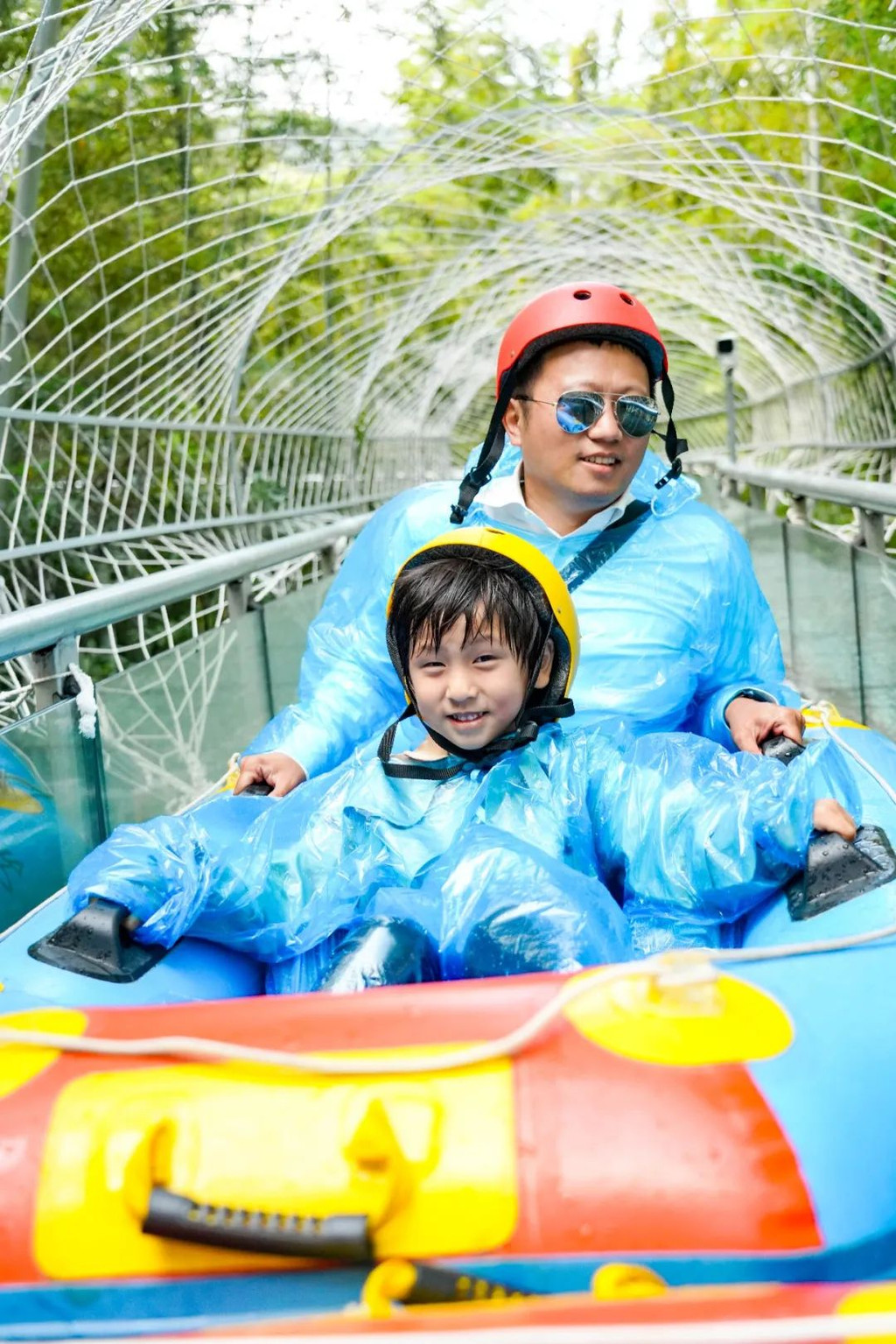 这让元宝喜出望外,没想到夏天之后,还能玩到他最爱的竹海漂流。全长1000m的玻璃滑道,休闲又刺激,穿好雨衣,不会湿身,水滴只是恰到好处随着弯道打在脸上,仿若水花和你的游戏追逐,老少皆宜,适合带孩子一起感受。