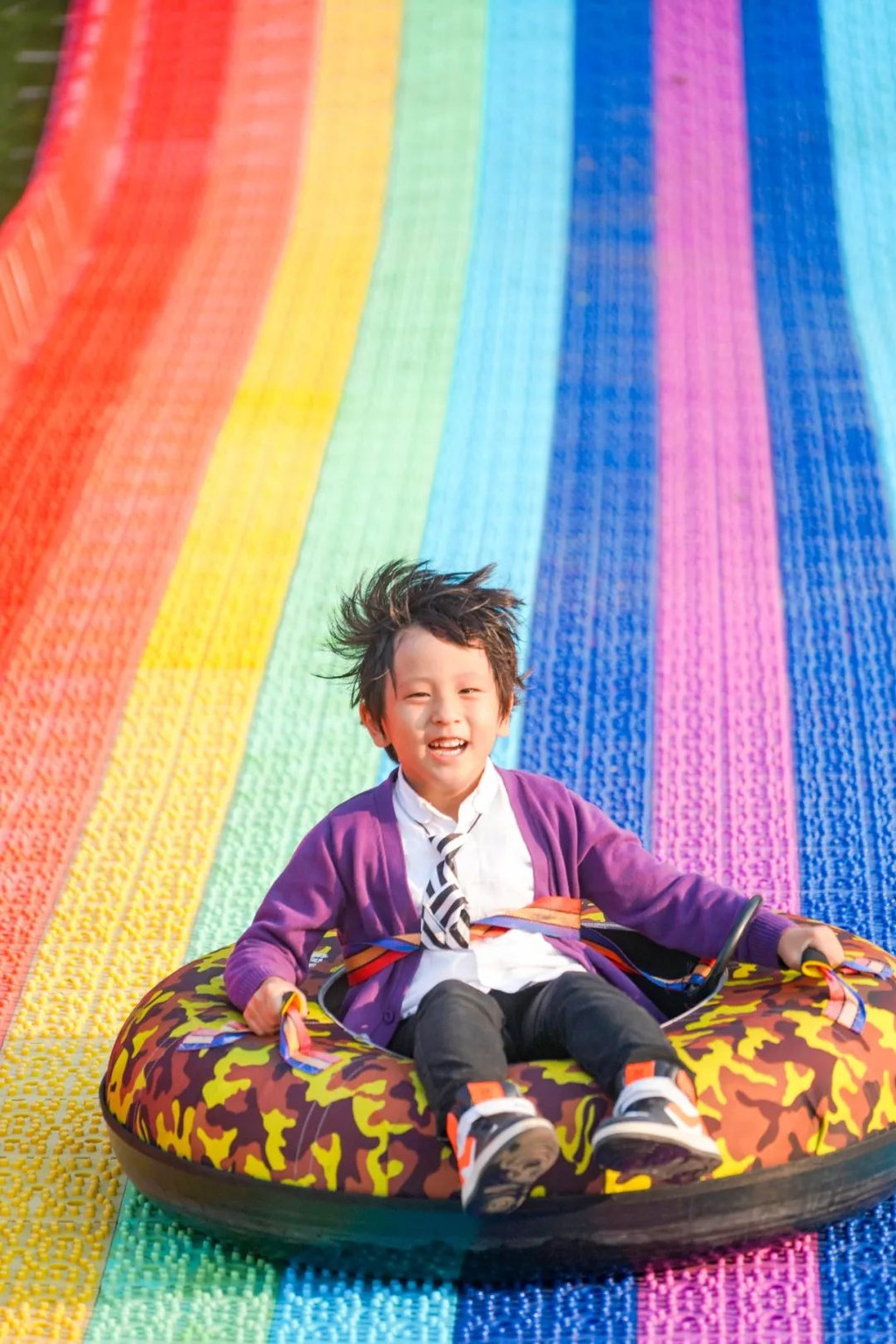 坐在橡皮圈里从七彩滑道上滑下来,刺激程度刚刚好,孩子也可以愉快地玩耍。
