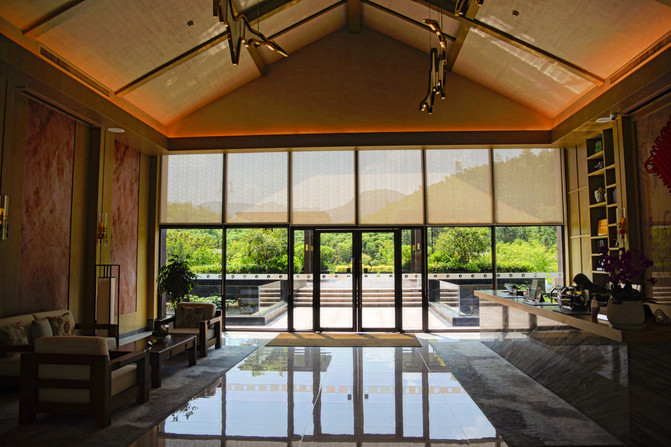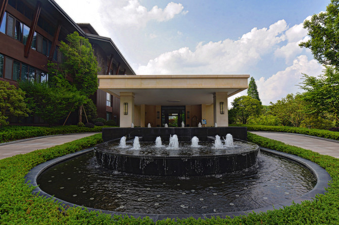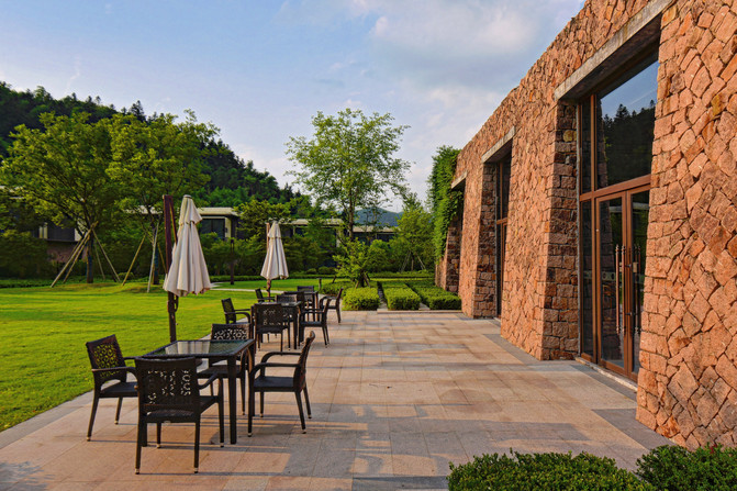 从酒店的大门进入,经过一个小山坡即可到达酒店的大堂,超高的绿化面积加上入户喷泉的水声,已经营造出了清凉的氛围,这里一般会比上海或者杭州市区低6~7度,避暑胜地果然名不虚传。
