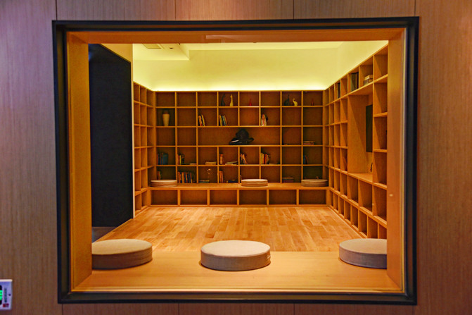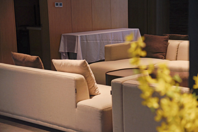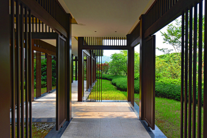 从门厅进入,就是一个折叠型的走廊,简约新中式风格显得轻奢淡雅,走过这个走廊,也宛如从车水马龙的喧嚣世界,走进了一个享受生活的世外桃源。酒店的前台大厅也十分讨喜,一面连接走廊,一面连接露台,都是落地玻璃自动门的设计,很有格调,如果遇到人比较多的时候,也可以在旁边的沙发稍作休息。