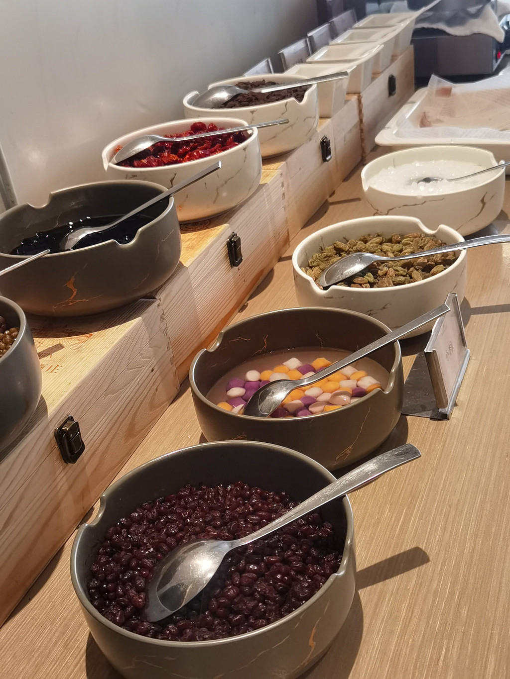 早餐品种还可以,餐厅也比较大,只有一位服务人员,两位热食操作员,但都安排的井井有条,不忙乱。