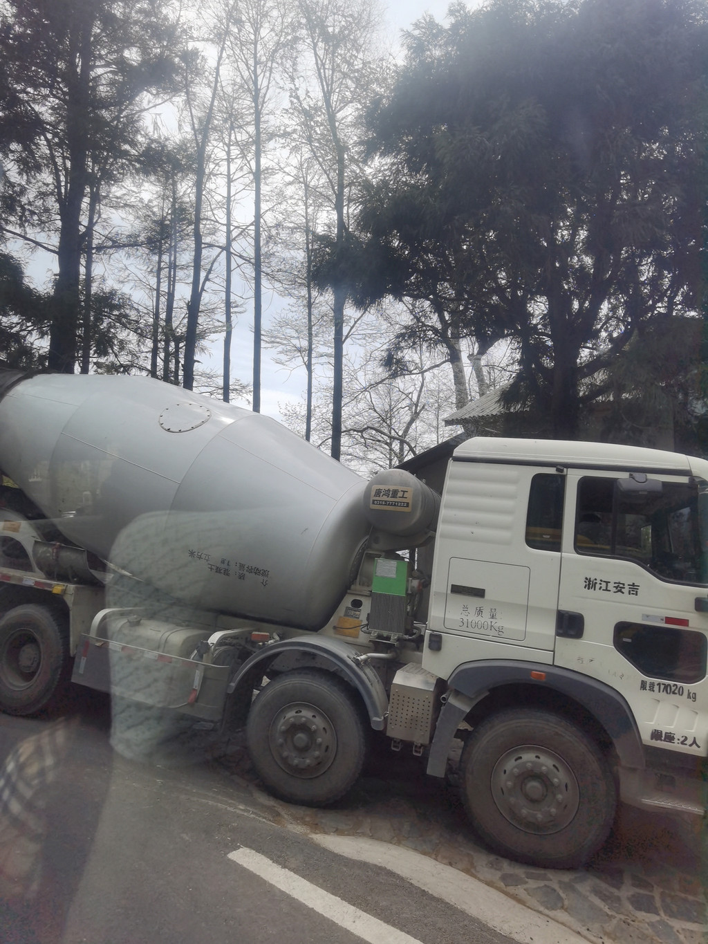 这么窄的山路,两个大水泥罐车对面开来,司机往后退,让水泥车从旁边一块空地错车......