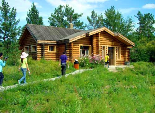 车友们在北极村纪念石前合影留念后开始进村观光。步行不远后,就看到了“村口第一家”。这是一个全木质结构房舍的农家小院,东北称这种木质房为“木刻楞”。之后继续前行人们会发现,在道路两旁都是类似的小院,这些农家小院基本都是家庭宾馆。记者随意走进一家,只见主人热情好客,屋内十分干净,还备有卫生间,条件相当不错。