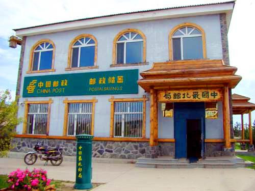 继续前行来到北极村的一个十字路口,这里已经显得较为繁华了。中国最北的邮局、中国最北一家金融机构、一些商店、饭店、宾馆、学校都在路口附近的周边地段。