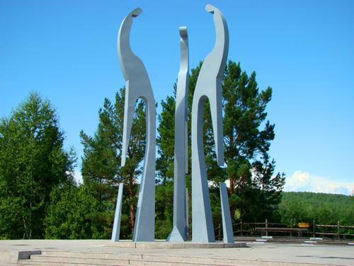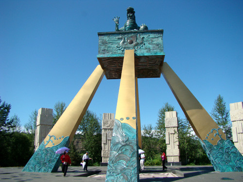 面积不大的北望垭口广场,是近年来北极村旅游兴起后修建的,据说这里就是雄鸡一般的中国版图的“鸡冠”的顶点所在,中国北极点的标志是一个矗立着 3个20多米高的“北”字的艺术钢雕。