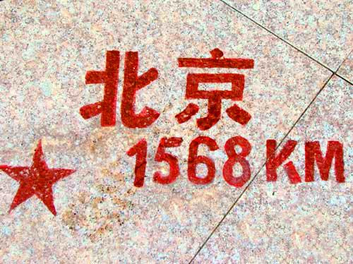在北极点的地面上还有一幅硕大的中国地图,上面标刻着中国的主要城市,以及它们和这个广场之间的距离。标示着北极村和北京、上海、台北、南沙、乌鲁木齐、三亚、丹东等全国各地的垂直距离。记者看到这里距北京的距离标识为1568公里。
