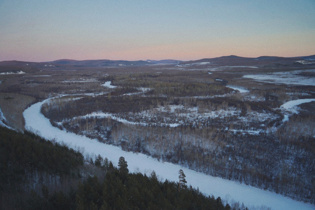 虽说不难熬,但对于认床体质的我而言,一宿没咋睡还是感到有点头疼不适的。但当我透过车窗看到大兴安岭的晨曦,瞬间让我觉得什么都是值得的。这样静谧而安详的景象,车窗外村庄泛起的袅袅炊烟,还有自己平和又轻快的心境,好久没出现过了。这个唤醒,我真爱了~