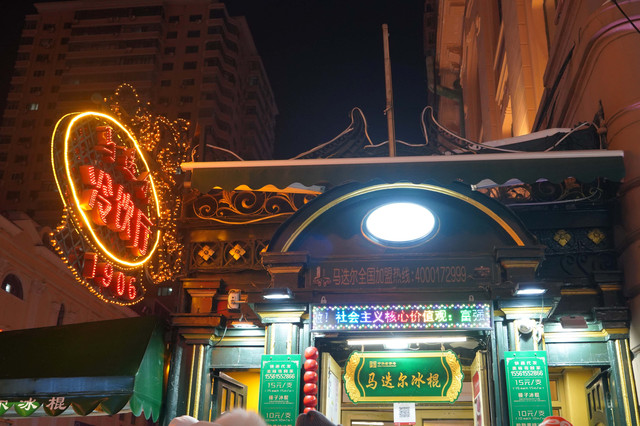 日照时间短,下午4、5就天黑了,回到中央大街干晚饭,夜景是蛮好看的,就是晚上太冷了~尽管如此,马迭尔冰棍真的好好吃哦~