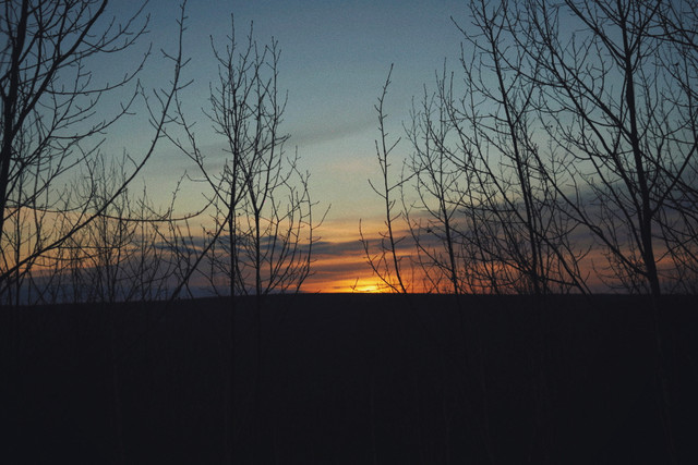 在日落前赶到了白桦林,快步疾走爬到山顶,恰好能赶上观赏一波日落余晖