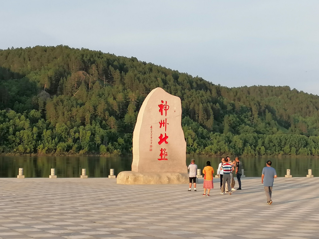 第十四天在北极村游览,黑龙江大水刚刚退去,临江的景点一地泥沙,洪水冲毁了很多木栈道,北线的景点还没有完全开放。乘电瓶车游览南线景点,有鄂伦春民族博物馆、观景塔、哨所等,在游船码头乘小游艇每位50元在界江巡游,晚六点以后自驾去北线。在北极村要接近九点方才日落,次日不到四点天就亮了,前几天刚刚夏至。