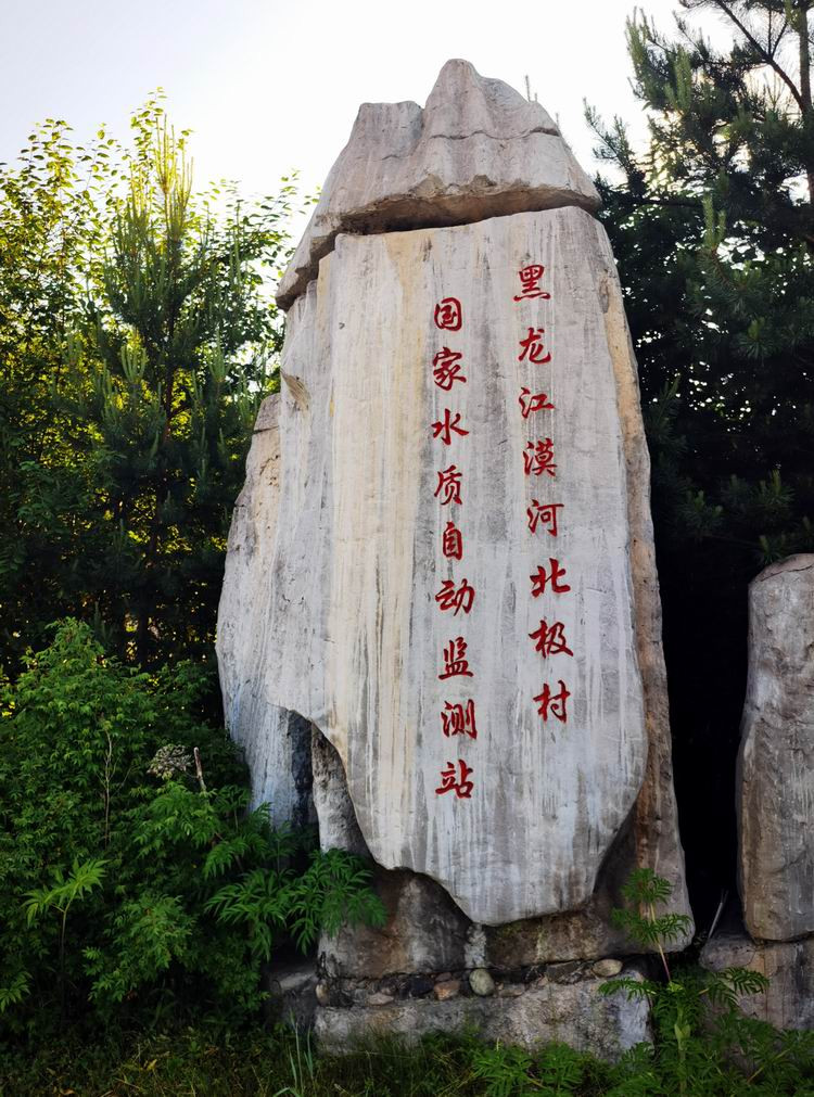 顺着木牌坊左侧的一条路进村不远就是北极村的纪念石。
