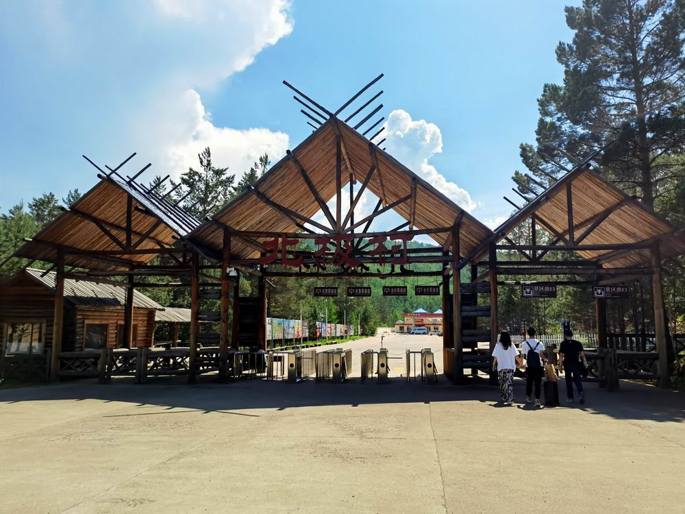 北极村风景区先后被评”国家AAAA级旅游风景区“,“中国最令人向往的20大金牌旅游胜地”,中国品牌百强景区”,“全国最有魅力的小城镇之一”,“中国首批特色景观旅游名镇”,“全国特色景观旅游名镇(村)”。图为北极村的出口。