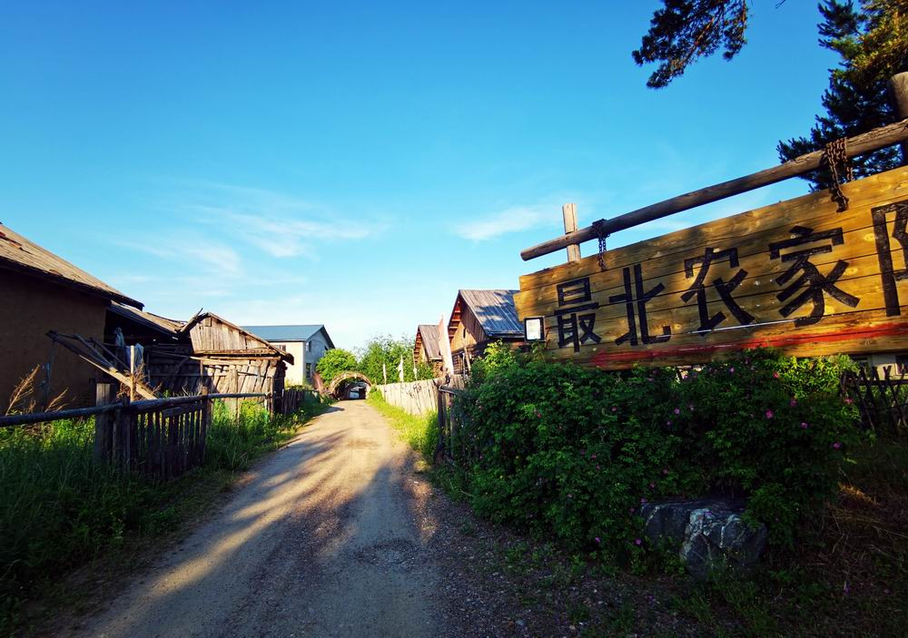 北极村是我国大陆最北端的临江小镇,与俄罗斯阿穆尔州的伊格娜思依诺村隔江相望。总面积16平方公里,人口2806人,距漠河县城西林吉镇83公里。照片摄于北极村村口。