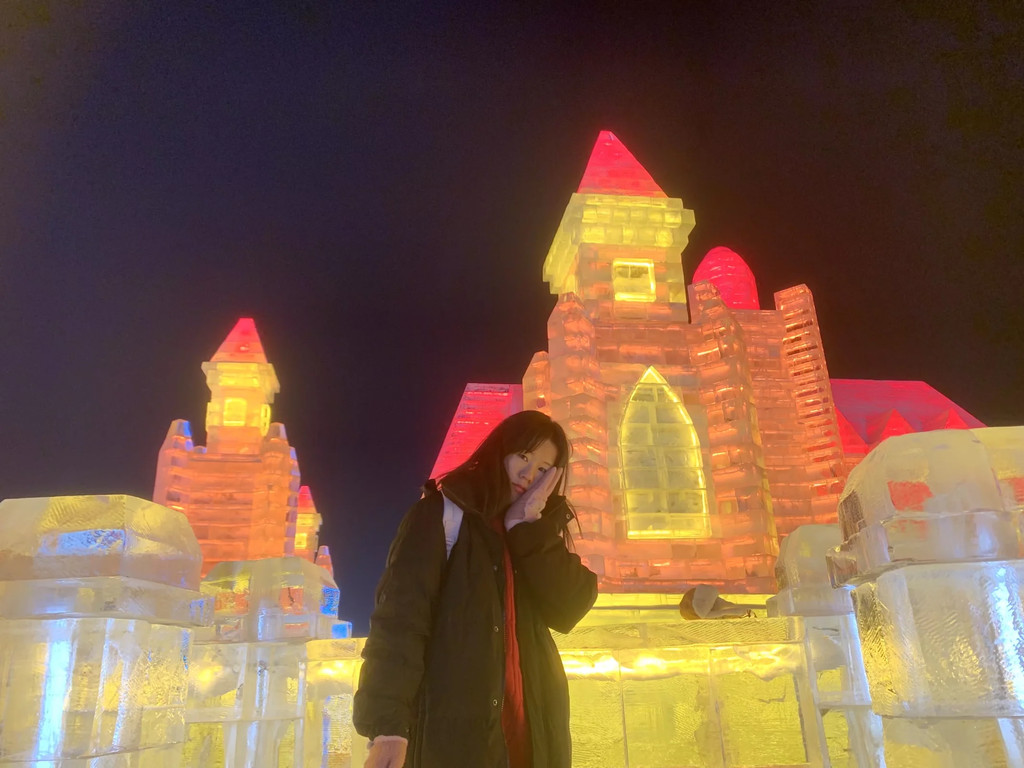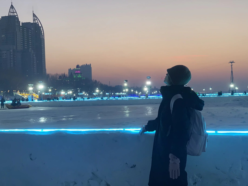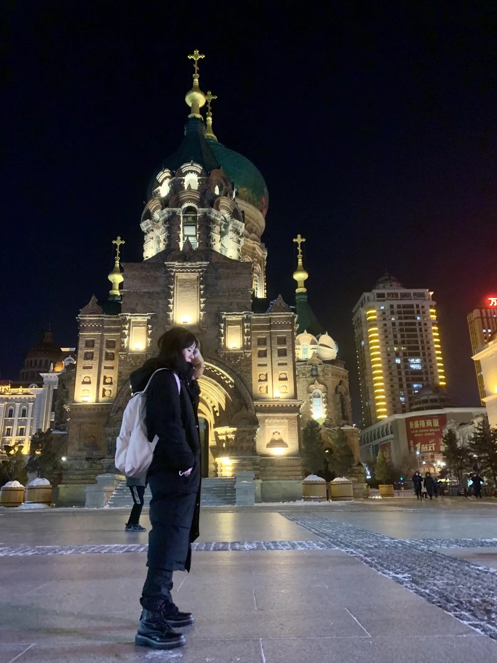 01.03 睡了个自然醒,十点左右起来,整理出门,想我堂堂铁铮铮热血女儿穿着穿着两条加绒裤,很傲气的走出酒店,走出整整一百米直到被白天的天气逼退回酒店再上了一条超厚加绒足足三条后再整装出门(其他不说,脱裤子真的贼麻烦qaq),逛了下中央大街,到处都是扫雪的环卫工阿姨叔叔,我真是个超爱记录拍照的南方妹子,可是在此时此刻我已经拿不出我的手然后脱掉手套留念了,只找了个商场吃东西,里头的人竟然都穿着短袖,MMP,说我们南方冬天比大北方冷真是不为过啊,最后找了个冰淇淋店吃着然后四处逛逛,等一起约好的哈尔滨一日游小伙伴,诶,毕竟-怪暖的,就是不出去,哈哈,然后就买各种冬天的装备,一起逛了哈尔滨市区,索菲亚教堂一起拍照,还和工作人员大叔热聊,说我们口音一听南方人,哈哈哈。随后就一起吃了晚饭,搞笑的是点了一碗十元的特色冷面,特地交代我们胃口小,还是做的超大盆,原谅我用盆形容,问了老板还是减少一半的分量做的,这也许就是北方人比我们南方人高大粗犷许多的原因吧。好感度加一,大方率直,而且基本与之每个有过一面之交的(司机师傅饭店服务员小卖铺老板问路的路人甲乙丙丁都非常热情友好,也是加分的地方之一),再一起做了核酸(大概这次东北行大概做了五次核酸),真是太难了,这是后话,就一起去冰雪大世界,因为疫情原因所以打了五折,算不枉此行,坐了刺激的滑冰,雪地滑雪转圈等,算是真正体验北方的冬天,南方人体验不到的快乐。但是实在是太冷了,所以冰雪世界下午六点进去拍拍照就走了,大概到晚上八点多一起小逛了下市区,就和短暂随行的的妹子分道扬镳结束3号行程。附图