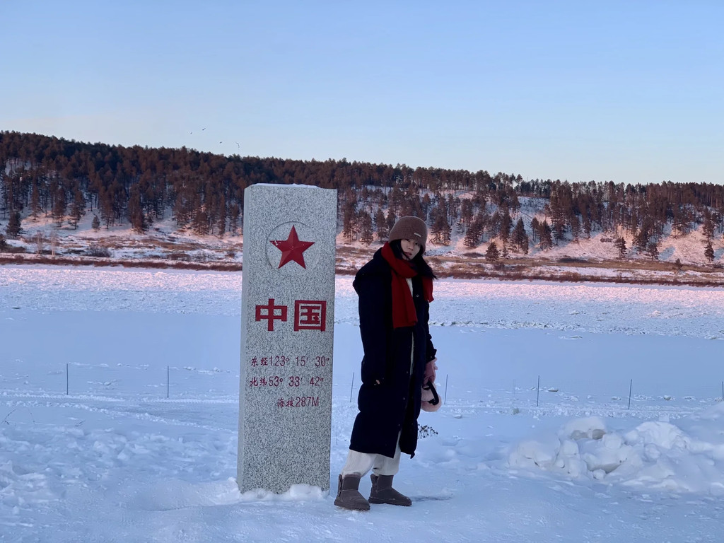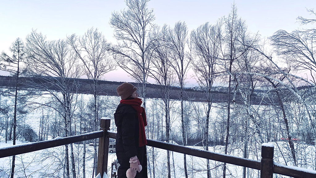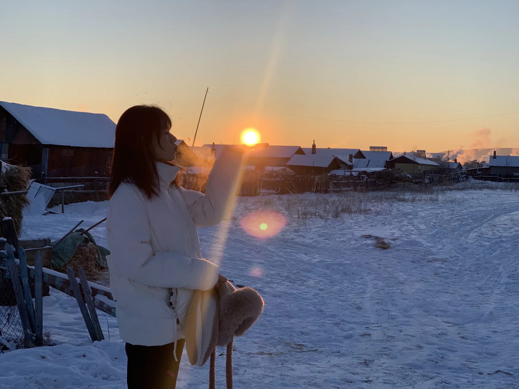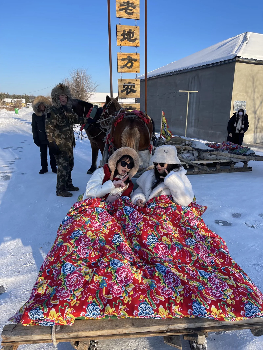 2022.01.09七点多醒了,半夜热醒好几次,炕上睡觉属实暖和,起来打开窗户,外面都是积雪,冷空气直接冒进来,词汇我已经都形容不出来的景象,民宿的阿姨已经给我们煮好早餐,自己家做的小菜以及大馒头包子和糙米粥,北方人胃口真是好哇,吃早餐的时候,外面的太阳已经升起老高了, 小哥早就准备好开水,让我们体验南方这辈子都感受不到的泼水成冰,然后我们就挨个拿着一壶开水直接往头上泼,泼的时候还是挺心有余悸地,虽然咱丑,但不能更丑啊,但是一出场这个水立马结成冰,这个场面还是相对来说比较壮观的,也是一直想来体验的项目之一,然后冻得受不了又回屋子加了件毛衣,准备坐马车(此马车不是你们想的那种很爽的马车QAQ),总之这一趟一个小时的户外行,是我这辈子最动次动次的时候了,一路上盖着红配绿大被子,还是冷,睫毛眉毛头发都结冰霜,手都冻得没知觉了,草草拍点照就赶忙走了,当下那会什么都记不清,只记得自己去了几个地标性的景点。看了好多雪人包括大白,看了很多标识,反正太阳底下,白茫茫的映入眼帘除了雪和大棉袄子的大哥,白茫茫的树木,没其他了,所以建议墨镜一定要带一个,太刺眼了。最后只记得坐着马驼赶着车夫师傅赶快送我们回屋,回屋外衣围巾帽子全都湿了,躲在老板店里的地暖喝了杯暖咖啡才稍微缓过来,感觉穿再后手脚都冰冻的没有知觉,休息了小半个小时就直接坐车回住宿吃午饭了,中午吃的是东北大饺子和他们的杀猪菜,到现在都没整明白这才到底哪里好吃了,看着东北小哥吃的津津有味哈哈,大概再回屋里头把能穿的都套上后,又重新出门了,下午一点又要去下个点就是独有的驯鹿园,这边的鹿很温顺,买点喂食就很配合的一起拍照,可惜衣服没穿对,穿的黑不溜秋的属实不是很好看,喂一喂,拍一拍,躲进帐篷里围着火炉烤火取暖,身子再一次回温后就去下一站(仰天长啸,真是贼特么太难了 ),下一站直接去中国最北邮局,买了几张邮票不知道老王收到没,好像是默认的习惯,去哪里都给寄一张,然后再去中俄边界线的防线,积雪堆了厚厚的一层,踩在哪里都是两脚被埋没,看了眼俄罗斯边境对面的小房子后,估计是不是对面的爱旅游的人也正有那么几个在看着我呢,小孩子们小打小闹下,真抗冻,一天天的呆在室外那么久,我早早躲车里了,然后看着他们在外面打雪仗,拍照,等着夕阳西下,不亦乐乎。此行唯一两个遗憾就是没有下雪,也没有去滑雪,在夜幕降临前,拍了几张绝美落日z照,四点半回去干饭,晚餐吃的很好,民宿的阿姨很好客,都是现杀得猪,我们也吃得很好,然后休整片刻就去逛了逛北极寸的夜景,然后去了所谓的漠河舞厅和北极的温度计,看着同行的00后再冰天雪地的东北大舞台上二人转跳舞,还是不得不感慨年轻真好哇,不过一会,我们又一屋子的人围在一起打各种南方人没打过的北方牌,东北大汉打牌是完全不让人啊 ,我们手臂都被打得红肿哈哈哈,吵吵闹闹的结束这一晚的换了时间后,和嘟嘟聊着聊着进入了梦乡,半夜又是被炕上热醒好几次,晚安09.上图