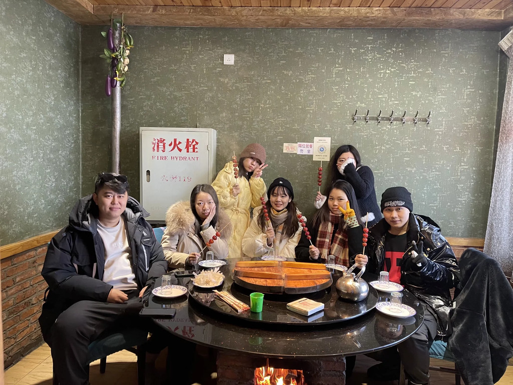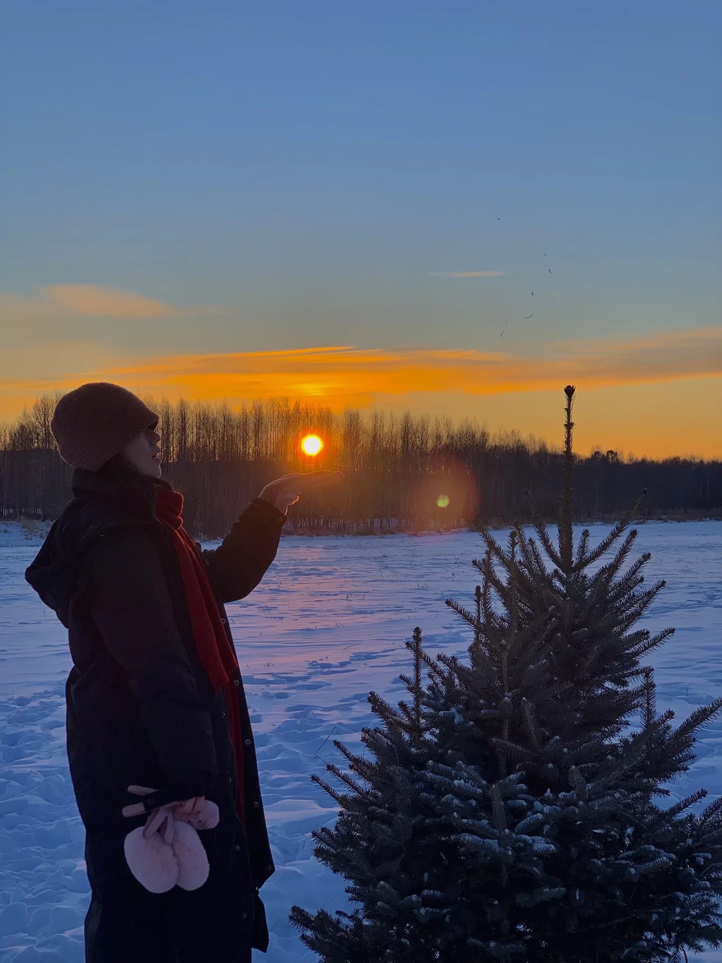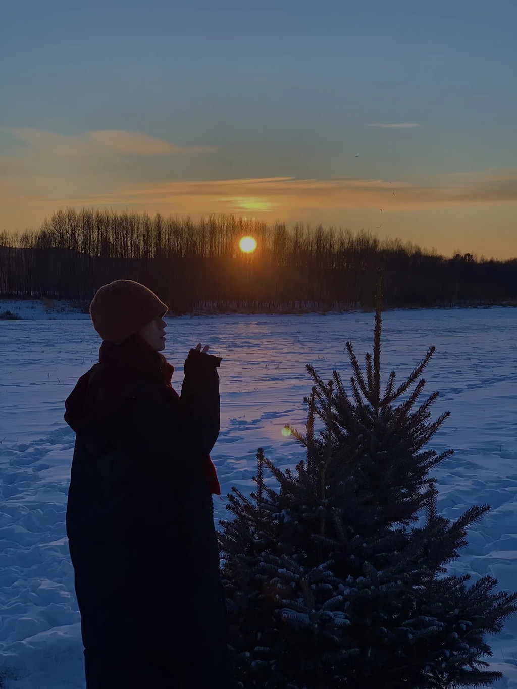 2022.01.09七点多醒了,半夜热醒好几次,炕上睡觉属实暖和,起来打开窗户,外面都是积雪,冷空气直接冒进来,词汇我已经都形容不出来的景象,民宿的阿姨已经给我们煮好早餐,自己家做的小菜以及大馒头包子和糙米粥,北方人胃口真是好哇,吃早餐的时候,外面的太阳已经升起老高了, 小哥早就准备好开水,让我们体验南方这辈子都感受不到的泼水成冰,然后我们就挨个拿着一壶开水直接往头上泼,泼的时候还是挺心有余悸地,虽然咱丑,但不能更丑啊,但是一出场这个水立马结成冰,这个场面还是相对来说比较壮观的,也是一直想来体验的项目之一,然后冻得受不了又回屋子加了件毛衣,准备坐马车(此马车不是你们想的那种很爽的马车QAQ),总之这一趟一个小时的户外行,是我这辈子最动次动次的时候了,一路上盖着红配绿大被子,还是冷,睫毛眉毛头发都结冰霜,手都冻得没知觉了,草草拍点照就赶忙走了,当下那会什么都记不清,只记得自己去了几个地标性的景点。看了好多雪人包括大白,看了很多标识,反正太阳底下,白茫茫的映入眼帘除了雪和大棉袄子的大哥,白茫茫的树木,没其他了,所以建议墨镜一定要带一个,太刺眼了。最后只记得坐着马驼赶着车夫师傅赶快送我们回屋,回屋外衣围巾帽子全都湿了,躲在老板店里的地暖喝了杯暖咖啡才稍微缓过来,感觉穿再后手脚都冰冻的没有知觉,休息了小半个小时就直接坐车回住宿吃午饭了,中午吃的是东北大饺子和他们的杀猪菜,到现在都没整明白这才到底哪里好吃了,看着东北小哥吃的津津有味哈哈,大概再回屋里头把能穿的都套上后,又重新出门了,下午一点又要去下个点就是独有的驯鹿园,这边的鹿很温顺,买点喂食就很配合的一起拍照,可惜衣服没穿对,穿的黑不溜秋的属实不是很好看,喂一喂,拍一拍,躲进帐篷里围着火炉烤火取暖,身子再一次回温后就去下一站(仰天长啸,真是贼特么太难了 ),下一站直接去中国最北邮局,买了几张邮票不知道老王收到没,好像是默认的习惯,去哪里都给寄一张,然后再去中俄边界线的防线,积雪堆了厚厚的一层,踩在哪里都是两脚被埋没,看了眼俄罗斯边境对面的小房子后,估计是不是对面的爱旅游的人也正有那么几个在看着我呢,小孩子们小打小闹下,真抗冻,一天天的呆在室外那么久,我早早躲车里了,然后看着他们在外面打雪仗,拍照,等着夕阳西下,不亦乐乎。此行唯一两个遗憾就是没有下雪,也没有去滑雪,在夜幕降临前,拍了几张绝美落日z照,四点半回去干饭,晚餐吃的很好,民宿的阿姨很好客,都是现杀得猪,我们也吃得很好,然后休整片刻就去逛了逛北极寸的夜景,然后去了所谓的漠河舞厅和北极的温度计,看着同行的00后再冰天雪地的东北大舞台上二人转跳舞,还是不得不感慨年轻真好哇,不过一会,我们又一屋子的人围在一起打各种南方人没打过的北方牌,东北大汉打牌是完全不让人啊 ,我们手臂都被打得红肿哈哈哈,吵吵闹闹的结束这一晚的换了时间后,和嘟嘟聊着聊着进入了梦乡,半夜又是被炕上热醒好几次,晚安09.上图