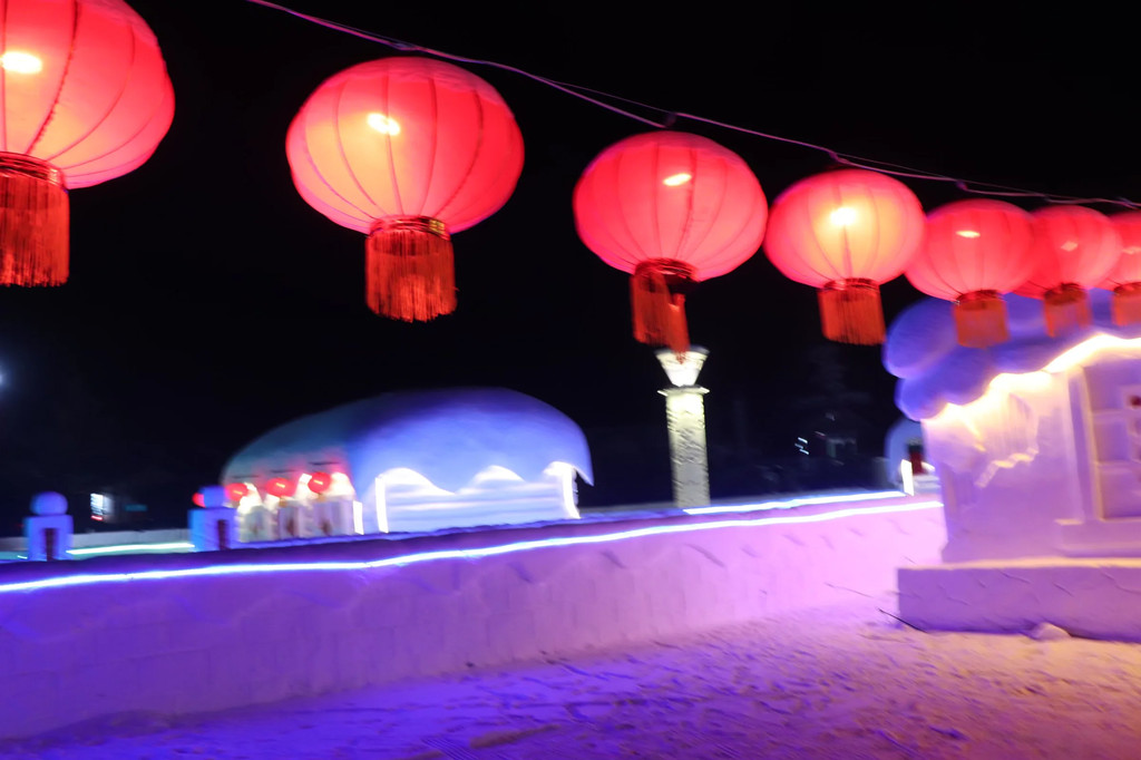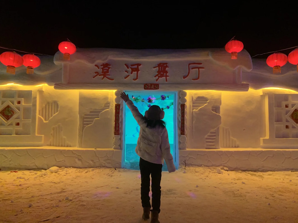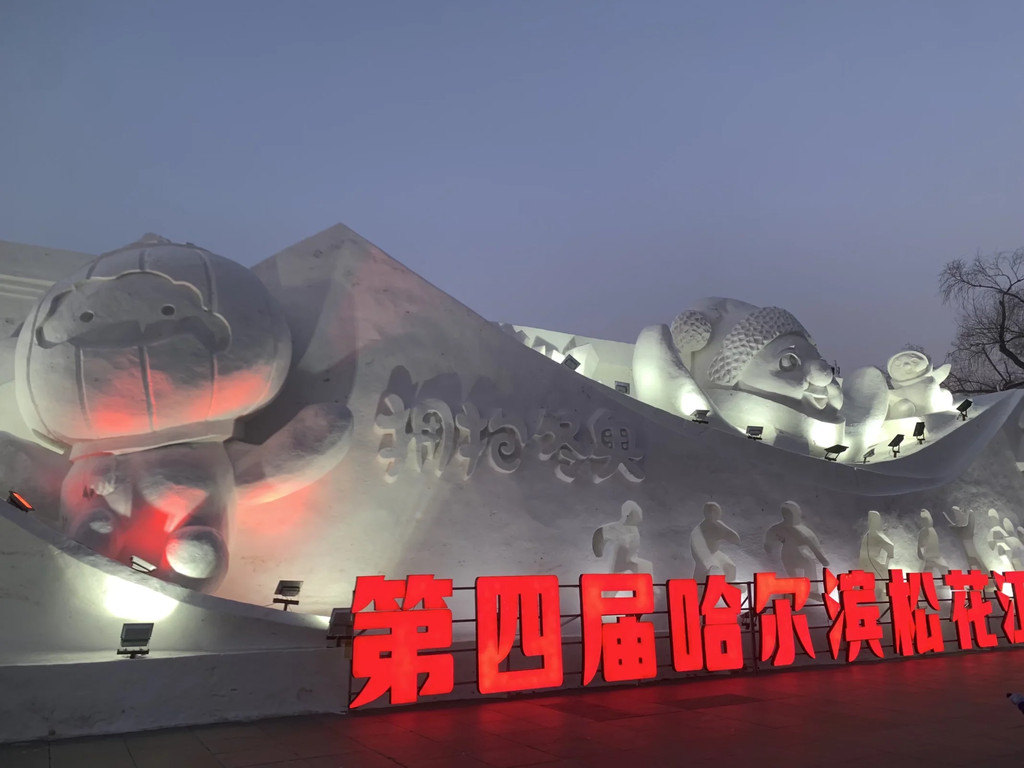 随处可见的雪雕冰雕 傍晚时分的松花江美景