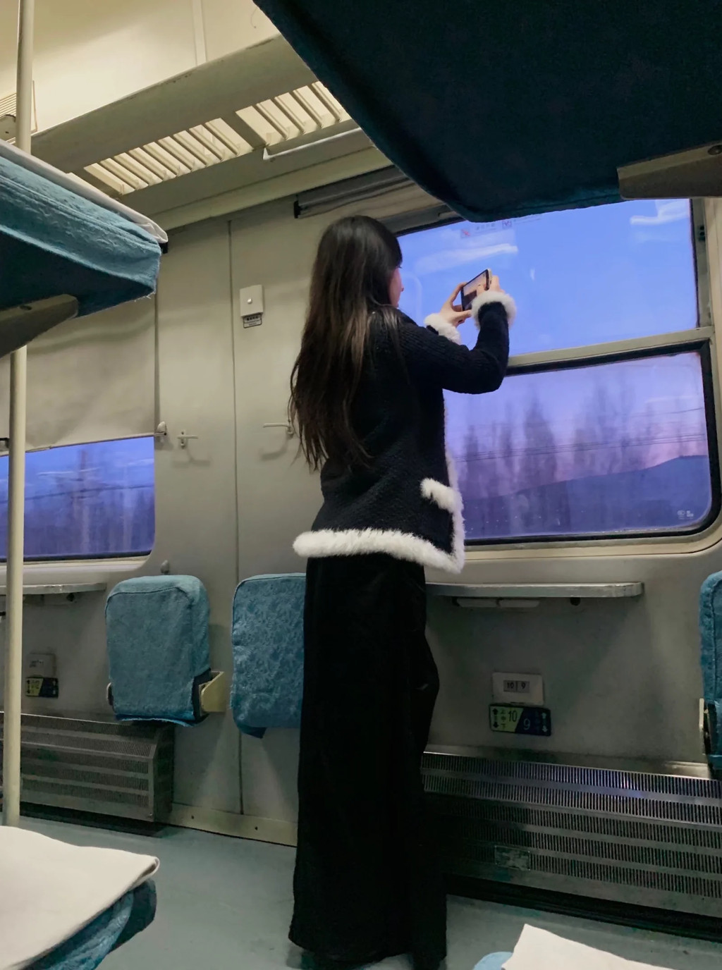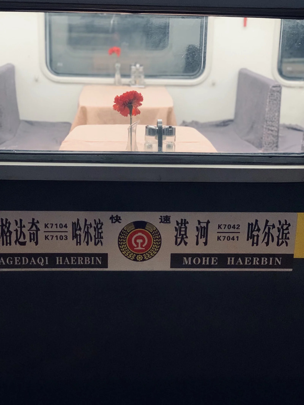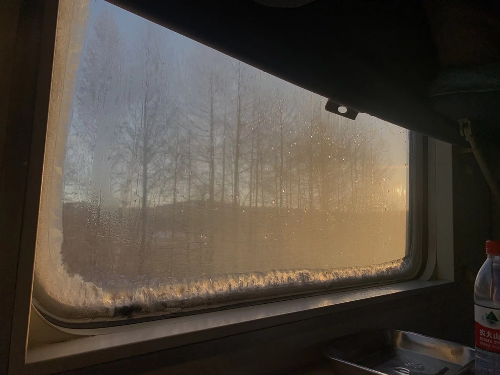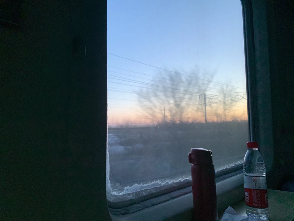 2022.01.07,很悠哉的吃了个早餐,这家酒店的早餐很不错,然后就直接跟小杨同学出发去车站了,还是五个小时的车程,一路车窗外的雪景忽闪而过,到了快中午一点的时候,约了另外一个一起同行的单人妹子去漠河,所以汇合一起吃个午饭,吃的铁锅炖排骨,相谈甚欢,非常喜欢这个叫嘟嘟的女生,很随和,性格也特别好的一个人,然后就又一起去了下松花江拍拍照看看中央大街的夜景,坐着晚上六点的卧铺火车去往中国最北漠河,时长十七个小时,太难啦,买不到下铺,太难啦,躺在上铺闷得慌,再一次想起了多年前火车无座二十个小时去西安的惨痛经历,当时到底是年轻气盛啊,生生熬过来,现在的十七小时睡一觉也还算平和,于是直接和车厢里五湖四海的大伙畅聊到九点,洗漱下,十点前就睡了,因为十点熄灯哈哈哈哈,结束01.07的一天。