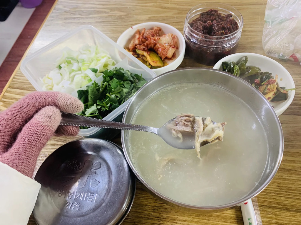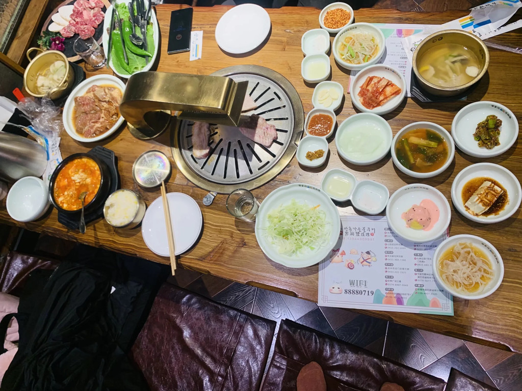 炕上吃烤肉 嫩豆腐汤 真的好好吃 早上的泡饭也好吃