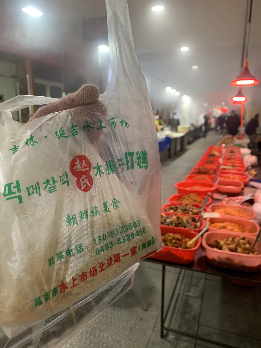 2022.01.05 昨晚九点多就睡了,惭愧惭愧,这家酒店床太好睡了。感觉比我住过的五星都舒服,起了个大早,直接去当地的水上市场,直接步行过去,延吉不大,跟我们大福安差不多,我大概七点半出门的,不知道是不是没见过的地方都觉得很漂亮,清晨的延吉我觉得太阳照耀下的天气更显得清冷,别样的感觉,估计还是农村人没见过世面吧哈哈哈,十分钟左右的路程,还是冻得慌,但是进到市集里面当地人那味就出来了,热热闹闹的就显得我一个人形单影只了,逛了一圈后,找了一家地道的早餐店,吃了一份韩式牛肉泡饭,还吃了年糕糯米这些小吃,心满意足的离开了,离开时打的回酒店的,的士起步价都是五元起,我那瘦弱的两只小鸡腿已经经不起任何风吹雨打了,尤其是零下二十度的天气,回去暖和了下,十点左右出门,一起吃了午饭星豆饭店,小红书推荐必须的饭店之一,不得不提一嘴,东北人的口粮也给的太足了吧,点了一份炸酱面和糖醋肉,感觉我老家十口人得分量,然后个人吃不惯,感觉没有北京炸酱面好吃,然后隔壁沈阳来旅游的一桌大姐姐们,太豪爽了,直接拿着碗筷就过来了还在蒙蔽的时候,小杨同学就热聊开了,人就直接个我们来了两大碟她们的菜,哈哈哈,不拘小节大大咧咧的性子太让人喜欢了吧,最后招呼我们去沈阳找她们,一口两口的她们光速解决完就撤了,可怜我们南方妹子不喜浪费,最后基本还是浪费的离开了,用完餐后就去了一个朝鲜族的小景区,不需要门票,小小的逛了一圈,本来想拍朝鲜服装,奈何天气实在是太冷啦, 我属实脱不下来,和一起玩的统男同志也不好意思让人家等着,就直接回酒店午睡了,是的睡觉,这延吉木有经典,就是吃得多,然后睡了,两小时,三点我们出门左拐逛了当地的西市场,劳资花了一百大洋买了一双雪地靴,直接扔了我的马丁黑靴,真的不抗冻!然后直奔背景墙打卡,简而言之就是一个大学城整个墙面带着韩文中字,对面又是延吉大学,很有特点的一个打卡点,由于我们过去时候天还未黑,所以看着属实一般,然后看了下就选择直接去干饭,选择的是一家也是地道的韩式烤肉店,坐在炕上吃烤肉简直是我一直想做的事情之一啊,两个人点了很多,吃的可以说非常划算了,然后店里的小哥哥都特别热情推荐我们去了好几个地方,什么吉林的雾凇岛啊,长白山泡温泉啊,还有可以看到对面是朝鲜的图们边境,商量后我和小杨同志只有一天的时间,所以决定去图们逛逛,吃饱喝足后直接打的回住宿,酒店不错可以洗衣服 ,可惜我个乡巴佬卷筒的不会使用,没干净就算了,米色的很多衣服还全部洗坏了,一言难尽,自己较劲生气了很久,还搁洗衣房冷了个把小时,又是一个早睡的晚上结束了非常轻松的一天行程,八点多就睡了,哈哈哈,延吉这地方其实说实在还蛮适合生活的,好吃的多,节奏不快,当地人也都热情,再者冬天是真的冬天,夏天也是真的夏天,我想如果人生可以重来一次的话,我的选择一定不像这样纠结,感慨啥啊,上图