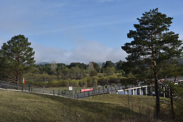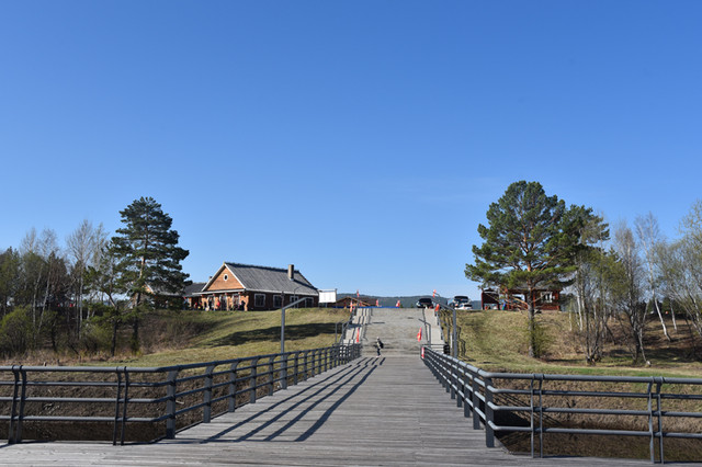北方的天亮得早,乘车直达停车场,跟着导游前行,行走木质栈道。虽然是夏天,大约在冬季,这正是:天朦胧,地朦胧,睡眼惺忪人蒙瞳,山朦胧,水朦胧,北极沙洲晨雾浓。走过一座桥,穿过一片林,来到了神州北极广场。