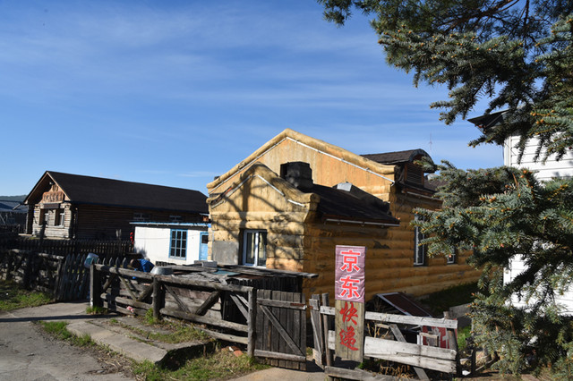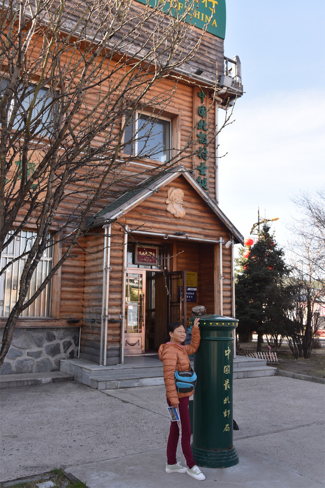 邮局已经开门营业,大家纷纷在邮局外拍照留影,有心人给家人或朋友寄送明信片。紧邻邮局的是中国最北客运站,从漠河县城发的班车最远就到这里了。那老旧的建筑是漠河供销社,也称北极村供销社,是县级文物保护单位。