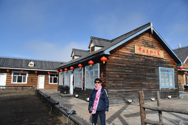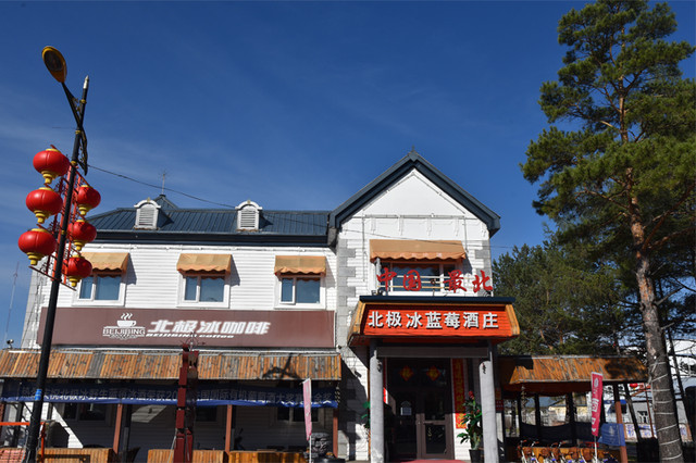 在北极村,以“北”字命名的商家匾额随处可见,处处彰显我国最北边陲文化,就连公路对面的北极冰蓝莓酒庄,也被冠于中国最北。我们在村子里短暂停留,只在这个十字路口转了转,也算找到了北,就当是阿Q,自我安慰一下。
