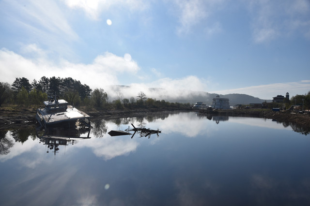 看着黑龙江江水静静地流淌,却不见对岸俄罗斯的真容,难免有点遗憾。天不随人愿,心中有感慨:起早遇上大雾天,树披白纱水生烟,地上积雪渐消融,太阳公公躲云间。冰天雪地,冷得打颤,此地不能久留,迈步活动筋骨。