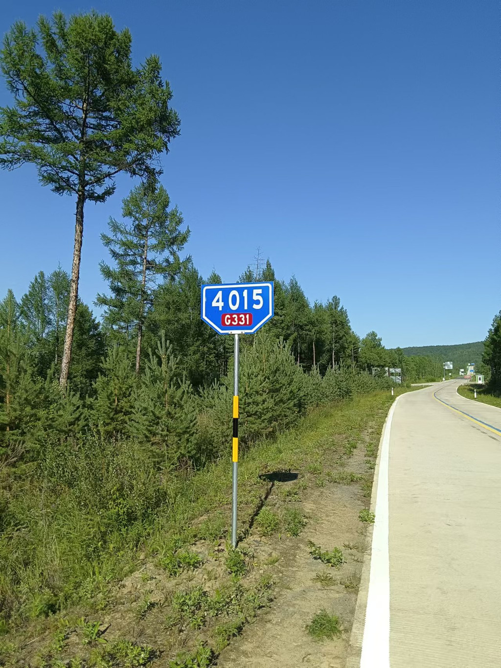 塔河经漠河到北极村旅游区全程280公里,大部分是高速,限速120公里。7月25日在塔河用早餐后,开车到漠河凯莱宾馆,约9点许,稍事停留,在宾馆前的一个市场内买点午餐食品,直接开赴北极村。游览北极村返程途中,到观音山景区打卡,观音山景区前是331国道与高速的交汇处,打卡331国道里程碑。查看车辆的里程表,显示已走行5000公里,331国道里程为4000余公里。